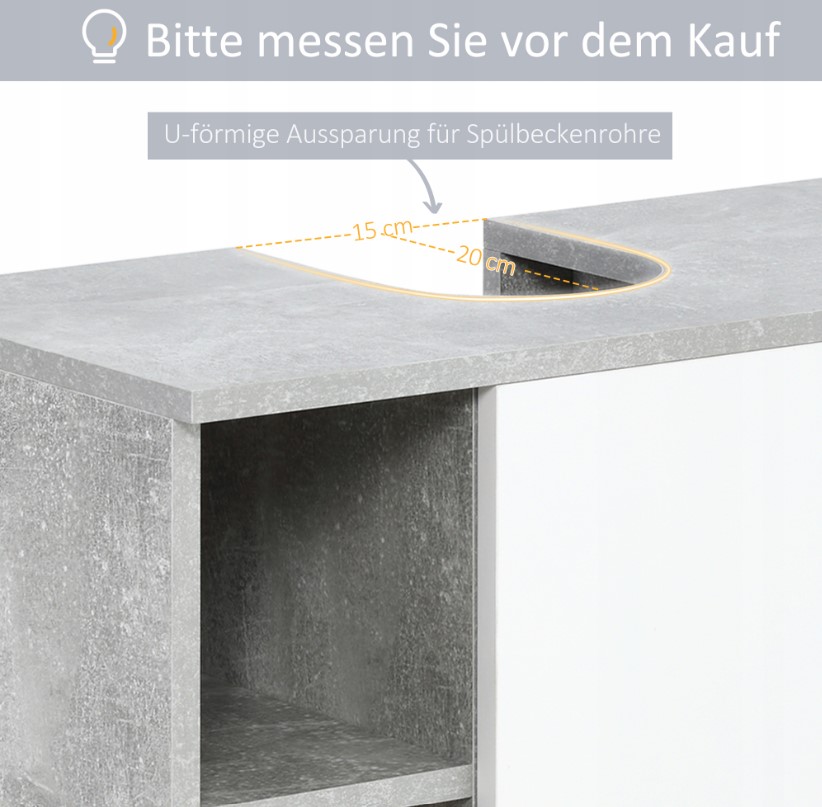 - ЭКОНОМИЯ ПРОСТРАНСТВА: этот шкафчик под раковину помещается под раковину и создает дополнительное место для хранения вещей в ванной комнате. П-образный вырез (15 Ш х 20 Г) для трубы умывальника. Перед покупкой рекомендуется измерить раковину.