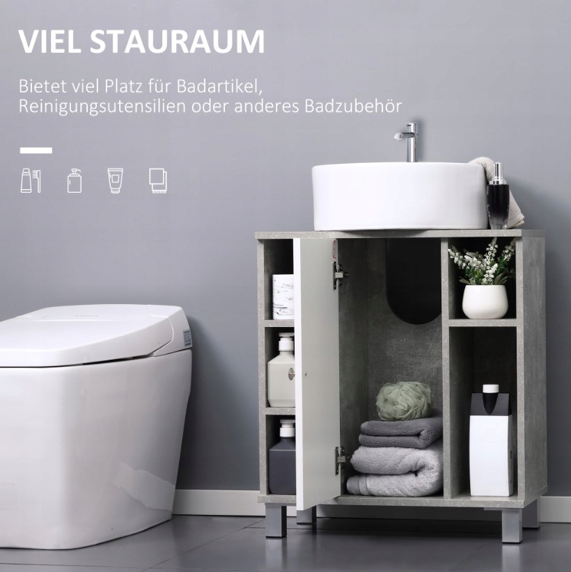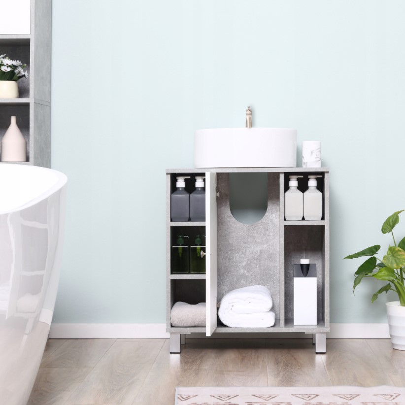 Максимизировать пространство в вашей ванной комнате еще никогда не было так просто – благодаря этой тумбе под умывальник от Kleankin. Современный дизайн и белый цвет придают ему простой и универсальный вид, который легко вписывается в комнату. П-образный вырез позволяет удобно разместить его вокруг раковины и труб. Несколько полок разных размеров и шкафов могут удовлетворить разные потребности в хранении.