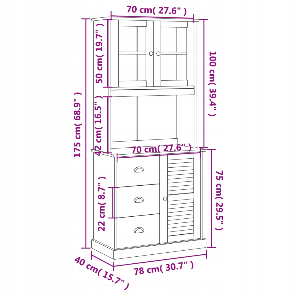 - Общие размеры: 78 х 40 х 175 см (Ш х Д х В)