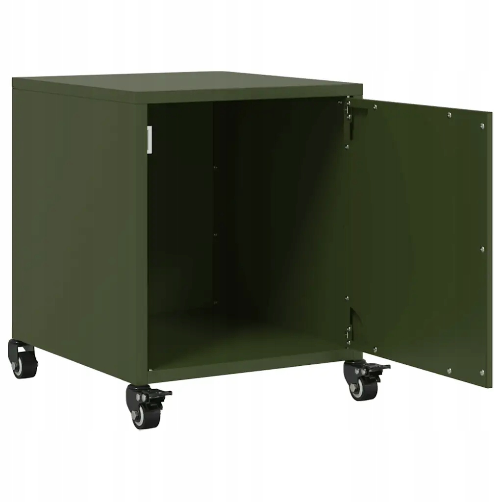 Прикроватная тумбочка оливкового цвета из рулонной стали, 36х39х43,5см, с ручкой и колесиками