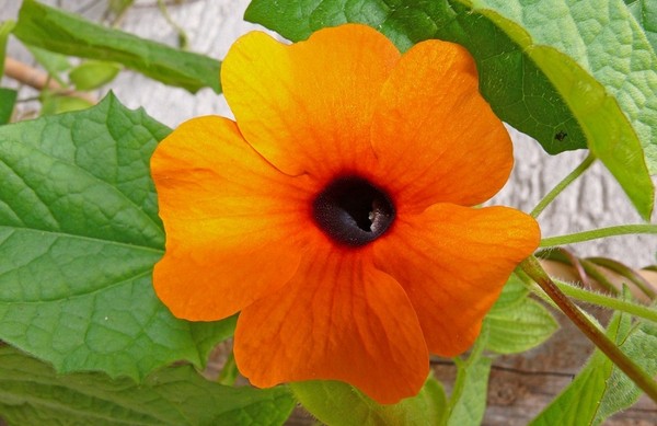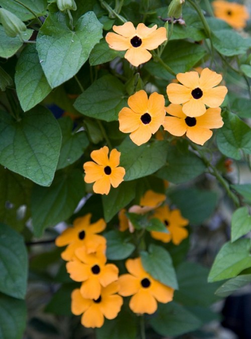 Однолетнее вьющееся растение высотой до 1,5 м. Цветки желтых оттенков с черным глазком появляются в большом количестве в июне-октябре.
