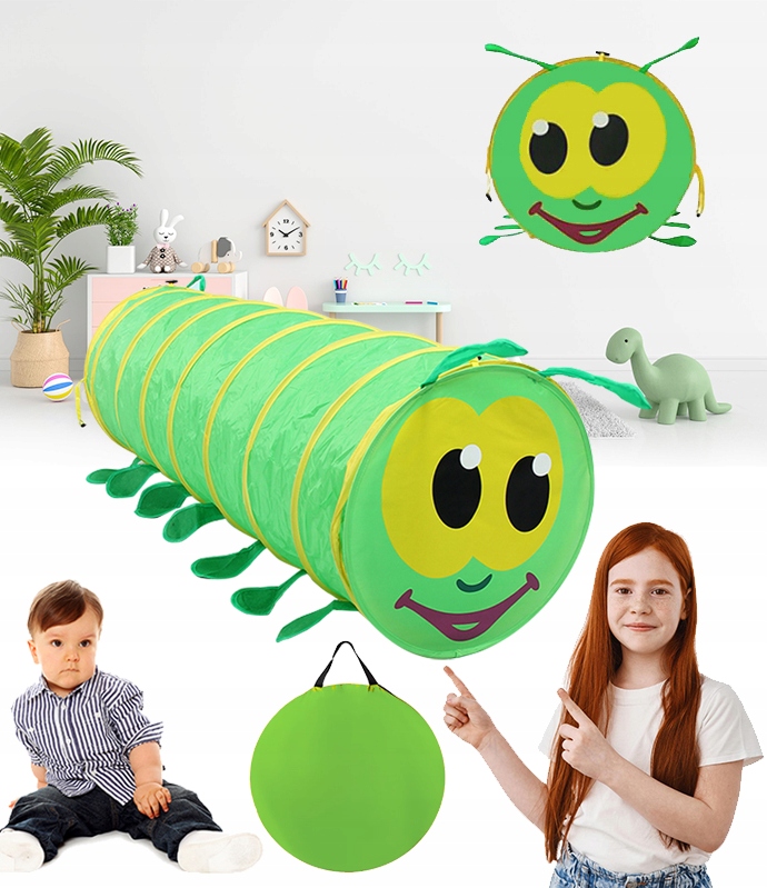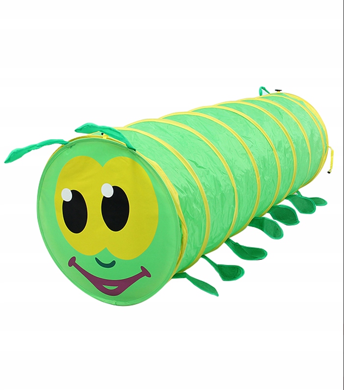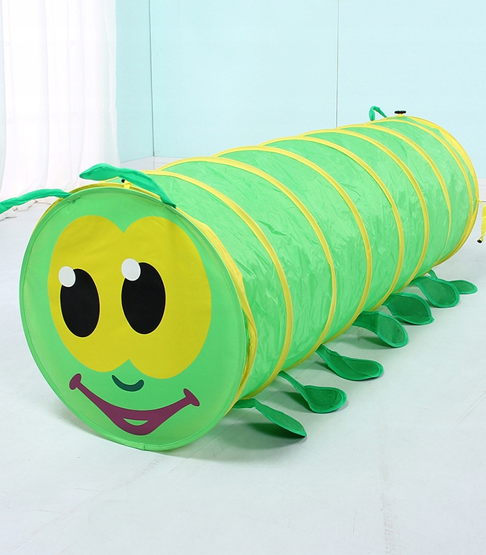 Гусеница изготовлена ​​из водонепроницаемого материала, поэтому ее можно использовать как на открытом воздухе, так и в помещении, что дает неограниченные возможности для игр. Полиэстеровый материал и металлический стержень облегчают сборку туннеля и его можно быстро сложить. Благодаря небольшим размерам, после складывания его можно брать практически куда угодно. Можно использовать как две палатки.
