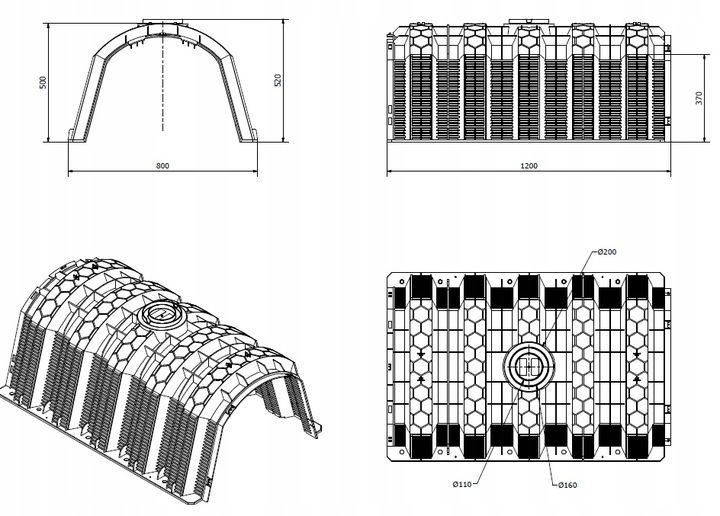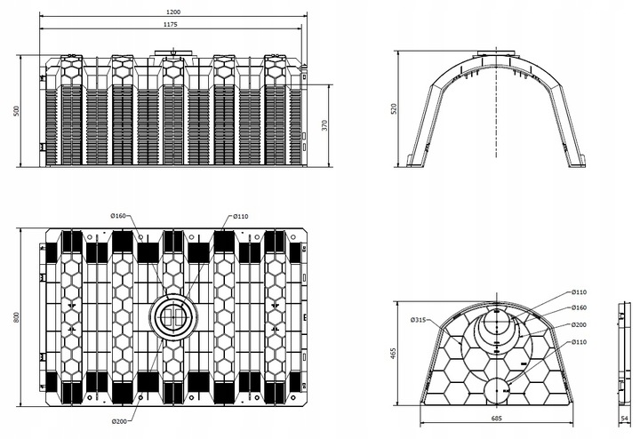 ✅ Крышка для инфильтрационного туннеля объемом 300 л предназначена для установки в начале и конце каждой нити станины. Крышка крепится к туннелю 300 с помощью специальных защелок. Крышка оснащена двумя патрубками Ø110 и по одному Ø160, Ø200, Ø315 мм.
