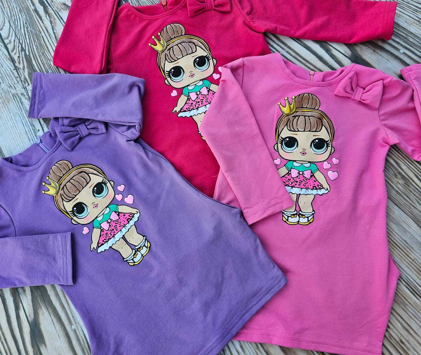 Платье выполнено очень тщательно, с вниманием к каждому деталь . Материал приятный на ощупь, высшего качества. Очень удобная туника-труба, с карманами, застегивающимися на молнию. Спереди декорирован бантиком, красивым принтом куклы ЛОЛ.