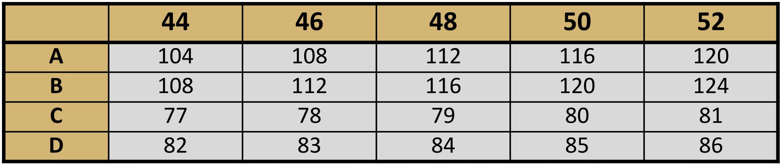 d - Общая длина Проверьте таблицу, чтобы выбрать правильный размер