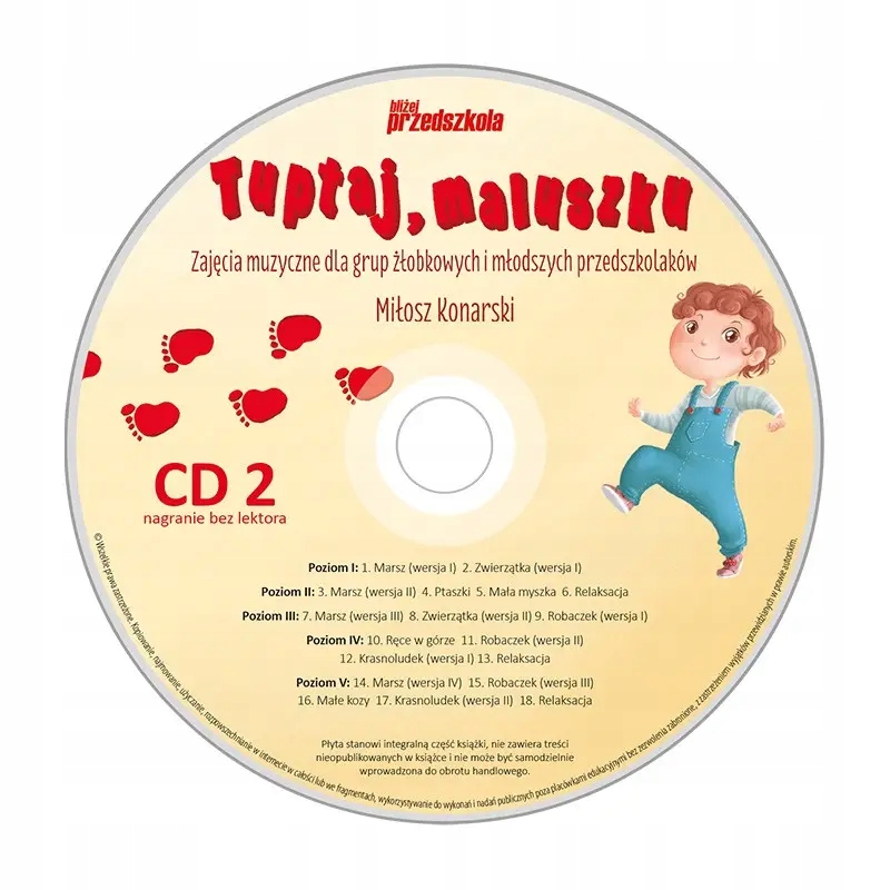 - cd 2 , содержащий отдельные игры с каждого уровня, без инструкций по словам о том, как их сделать - этот вариант будет полезен, когда дети хорошо узнают о конкретных играх и не будут нуждаться в словесных советах, как при данной музыкальной записи, вы должны повеселиться;