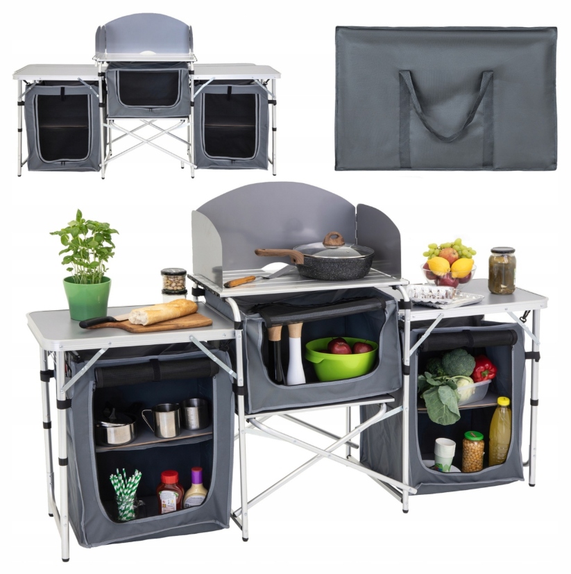 Откройте для себя многофункциональную туристическую кухню Super – идеальное решение для любителей кемпинга, пикников и поездок на природу! Этот практичный складной шкаф сочетает в себе функциональность полевой кухни, место для хранения вещей и удобный стол — все в одном компактном решении с сумкой для транспортировки.