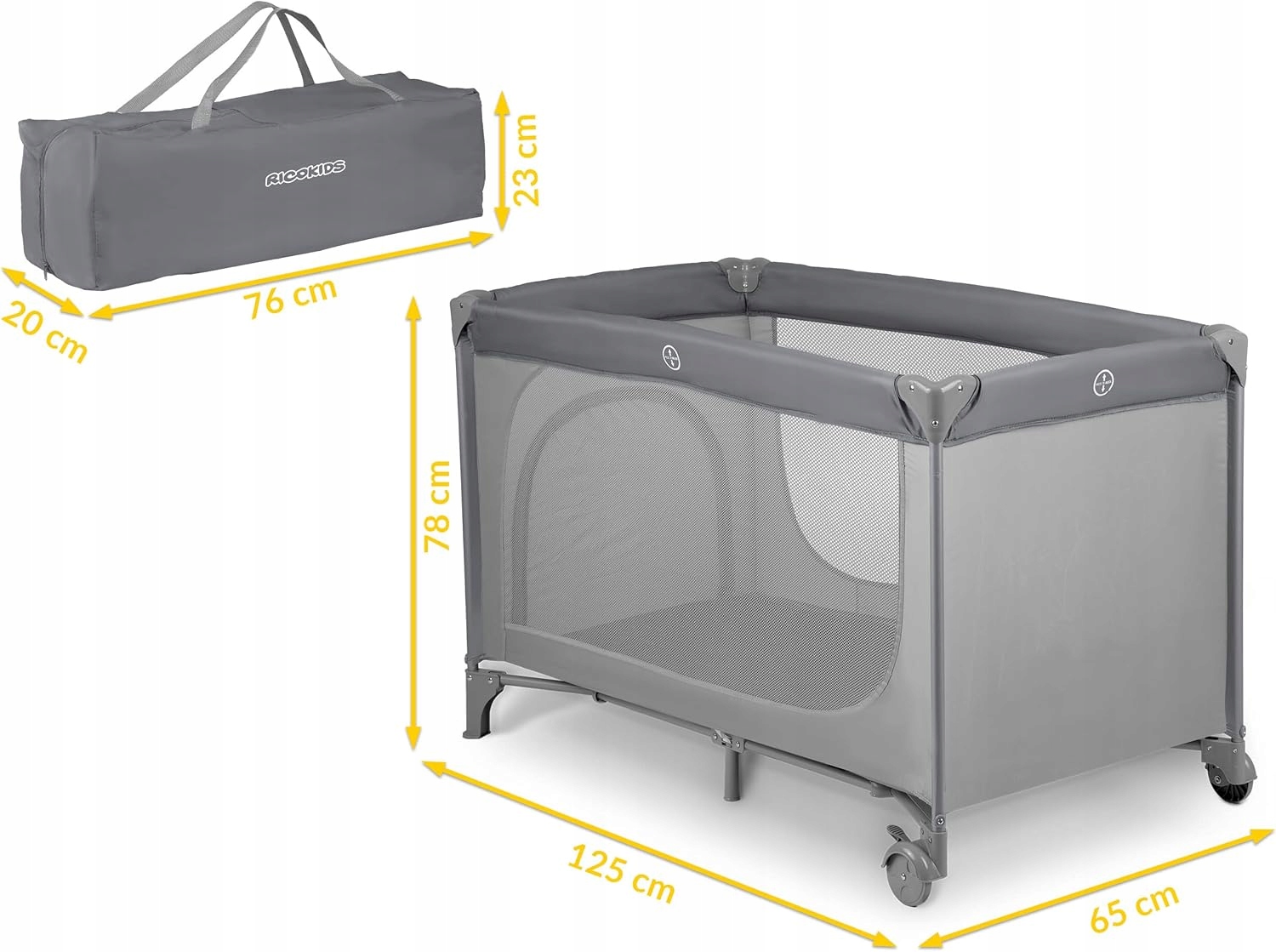 Легкий транспорт - кроватка легко и быстро распространяется и сложена. Набор включает в себя сумку, которая облегчает транспортировку кроватки. Благодаря небольшим размерам после складывания (77 x 21 x 19 см), кроватка легко вписывается в багажник.
