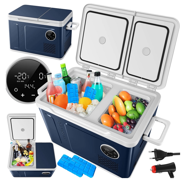 Холодильник достигает температуры 0 ° C всего за 30 минут, что делает его идеальным решением для поездок на рыбалку, кемпинга, на открытом воздухе и для использования в домах, частных помещениях. Он также совместим с солнечными панелями и электростанциями, что делает его экологическим и независимым решением в путешествиях.