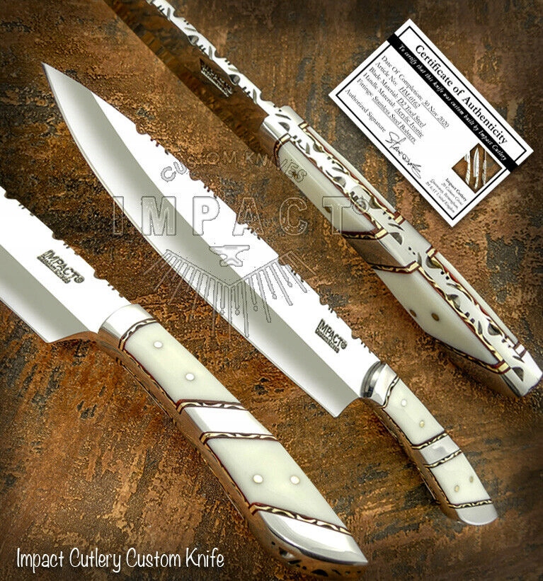 Новый красивый нож Боуи ручной работы от бренда Impact Custom Knife, изготовленный из культовой стали D2. Он отлично подходит в качестве охотничьего, походного, тактического ножа, а также уникального поварского ножа. D2 0152