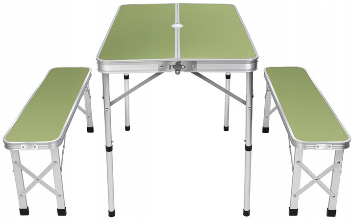Стол можно регулировать по высоте, чтобы 40 см или 70 см. Складной стол дополнен двумя складными походными скамейками. Складные скамейки можно легко переносить в сложенном походном столике.