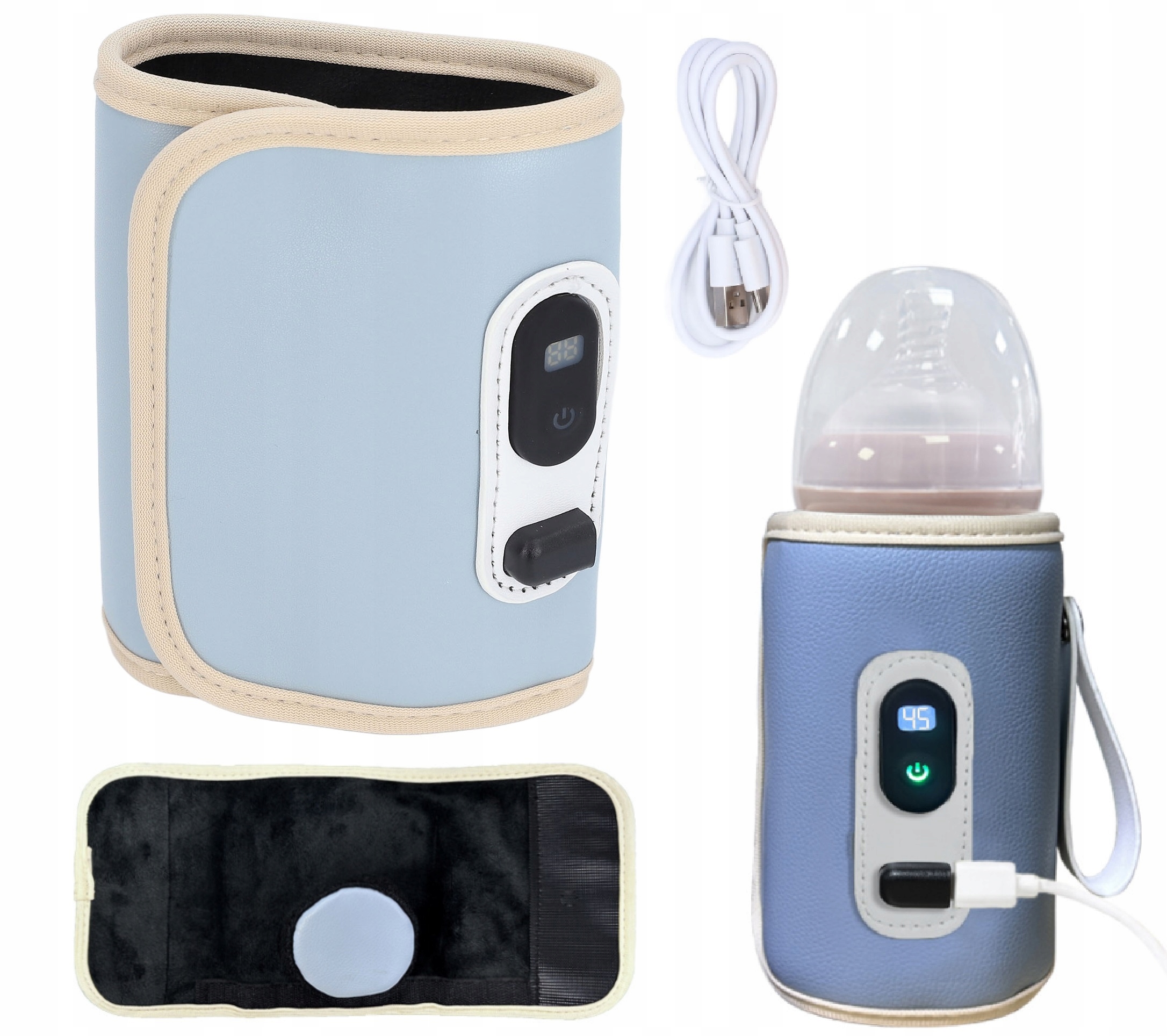 ТУРИСТИЧНИЙ ПОРТАТИВНИЙ ПІДІГРІВАЧ ДЛЯ ПЛЯШОК ЇЖІ USB 40-60 LCD