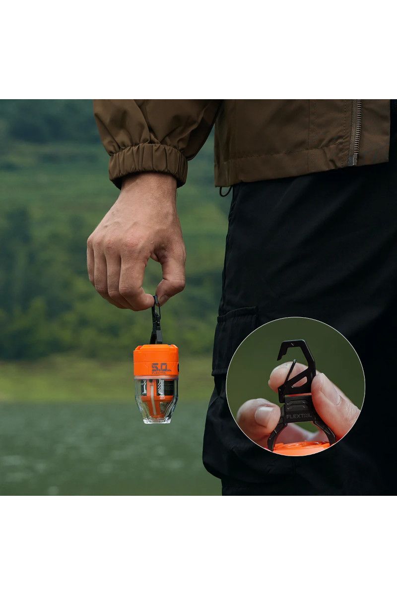 Встроенный фонарик имеет три режима работы мощностью 100, 200 и 300 лм и может светить до 11 часов на одном заряде аккумулятора. Светодиоды расположены вокруг корпуса так, чтобы свет охватывал как можно большую поверхность. Крышку фонаря можно снять. Насос продается с мягким чехлом.
