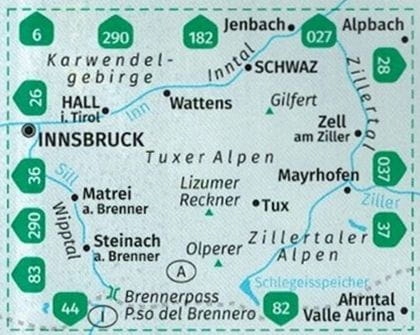 tuxer alpen inntal wipptal Zillertal Map kompass h2>