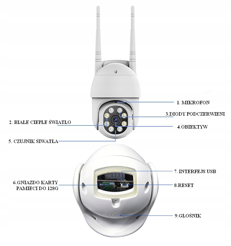 - поворотную камеру с держателем и антенной Wi-Fi