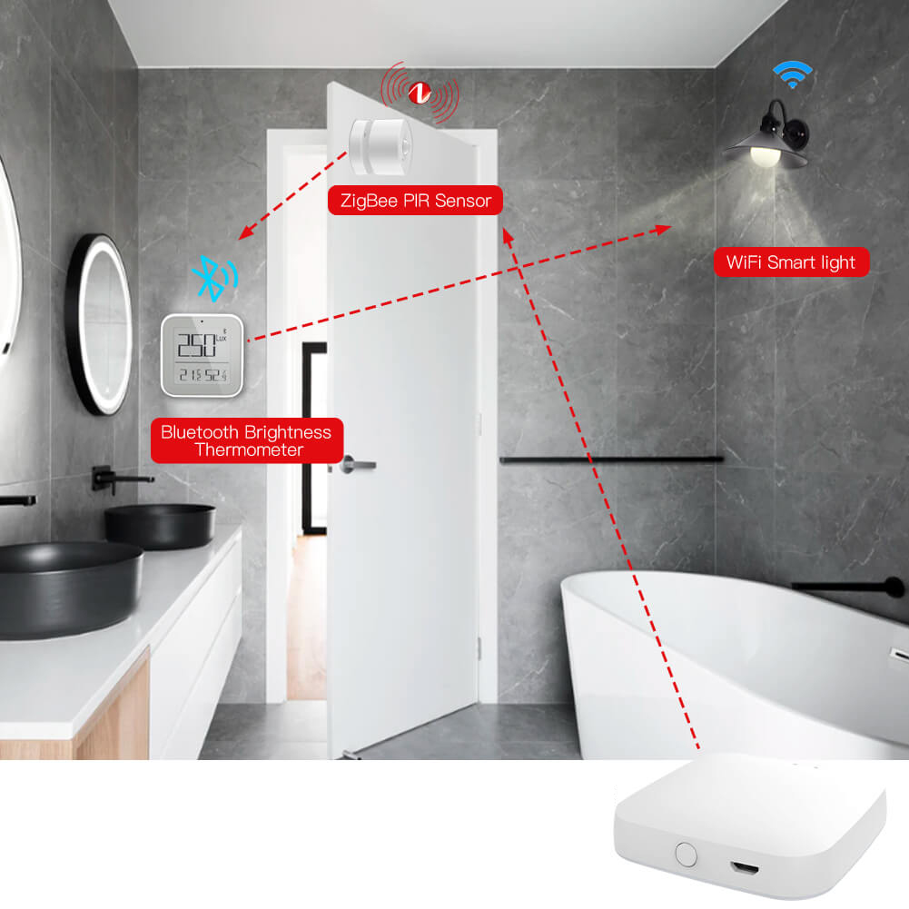 Дистанционное управление: независимо от того, где вы находитесь, вы можете удаленно управлять подключенными шлюзами через приложение Tuya Smart через свой мобильный телефон. Доступ к управлению Bluetooth и ZigBee осуществляется через два разных интерфейса концентратора шлюза с несколькими режимами управления, поддерживаемыми службами локального подключения и группового управления.