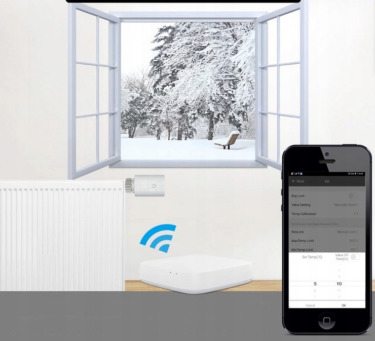 Наш продукт позволяет дистанционно управлять отоплением в доме или квартире через термостатические головки, установленные на радиаторе.
