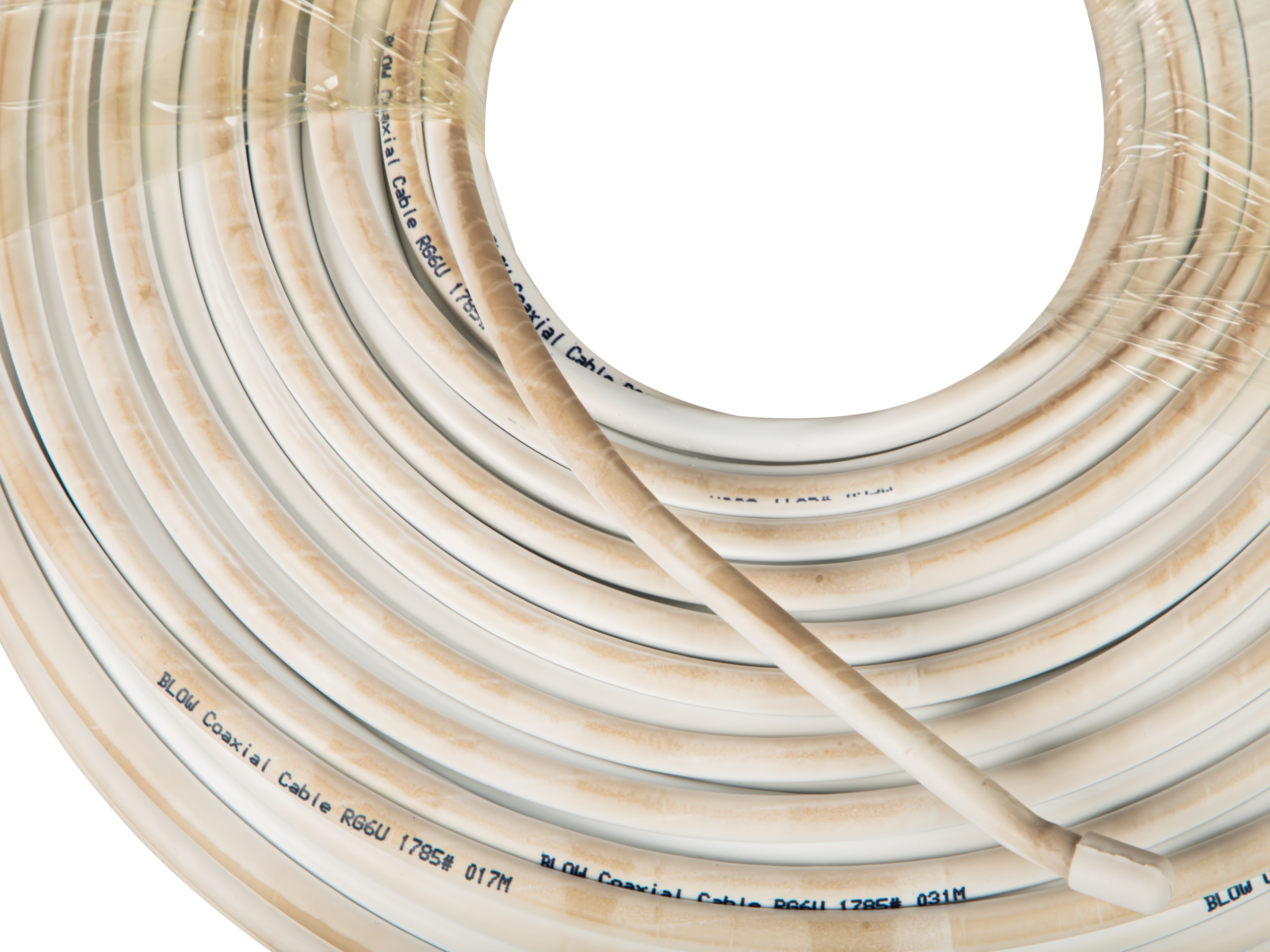Высококачественный коаксиальный кабель BLOW с очень хорошими параметрами. Идеально подходит для домашнего и промышленного наземного и спутникового телевидения. Кабель гибкий и может использоваться как внутри, так и снаружи помещения. Толстая оплетка обеспечивает идеальную изоляцию передаваемого сигнала.