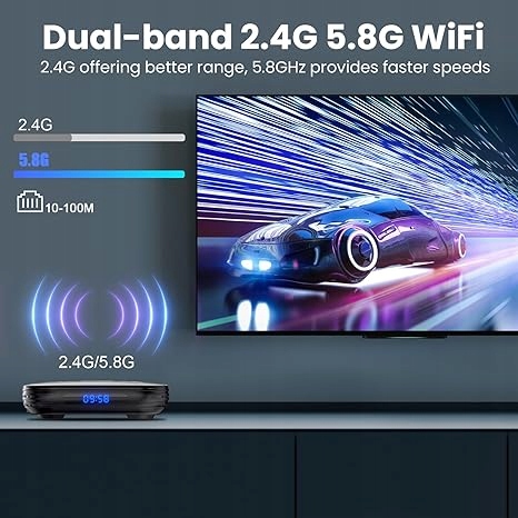 【WiFi 2,4G и 5,8G + BT5.0】Оставайтесь на связи благодаря двухдиапазонному Wi-Fi (2,4G и 5,8G), обеспечивающему стабильный и быстрый просмотр. Ваше устройство Android поддерживает Ethernet, обеспечивая надежное и бесперебойное соединение. Подключите беспроводные наушники, колонки или игровые контроллеры с помощью BT5.0, чтобы получить по-настоящему захватывающее звучание.