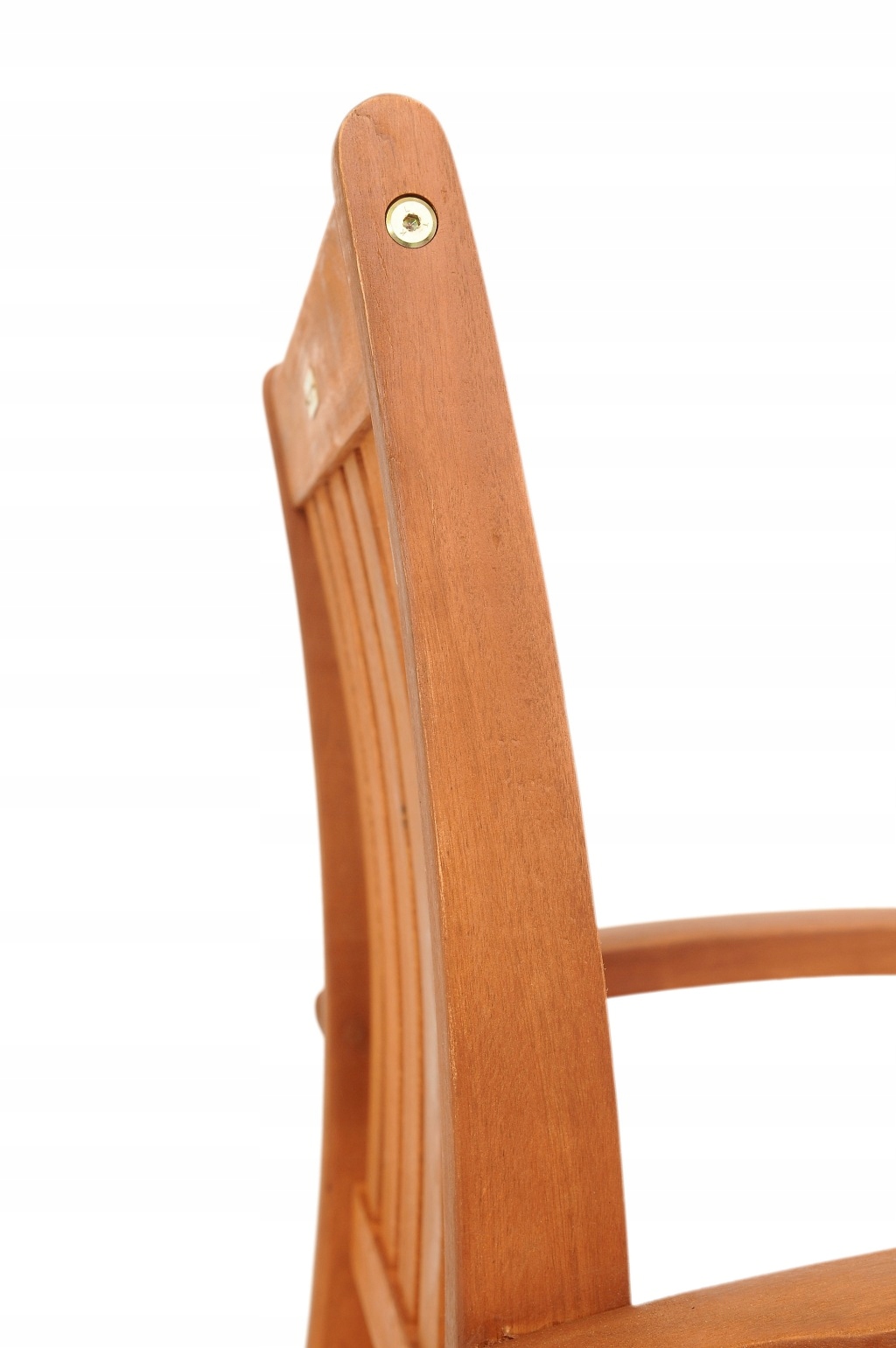 Благодаря содержанию маслянистых веществ древесина не обесцвечивается. Ажурные выпуклости сиденья, спинки и подлокотников придают креслу исключительную элегантность и повышают комфорт сидения. Красивый коричнево-красный цвет прекрасно сочетается с зеленью террасы или сада.
