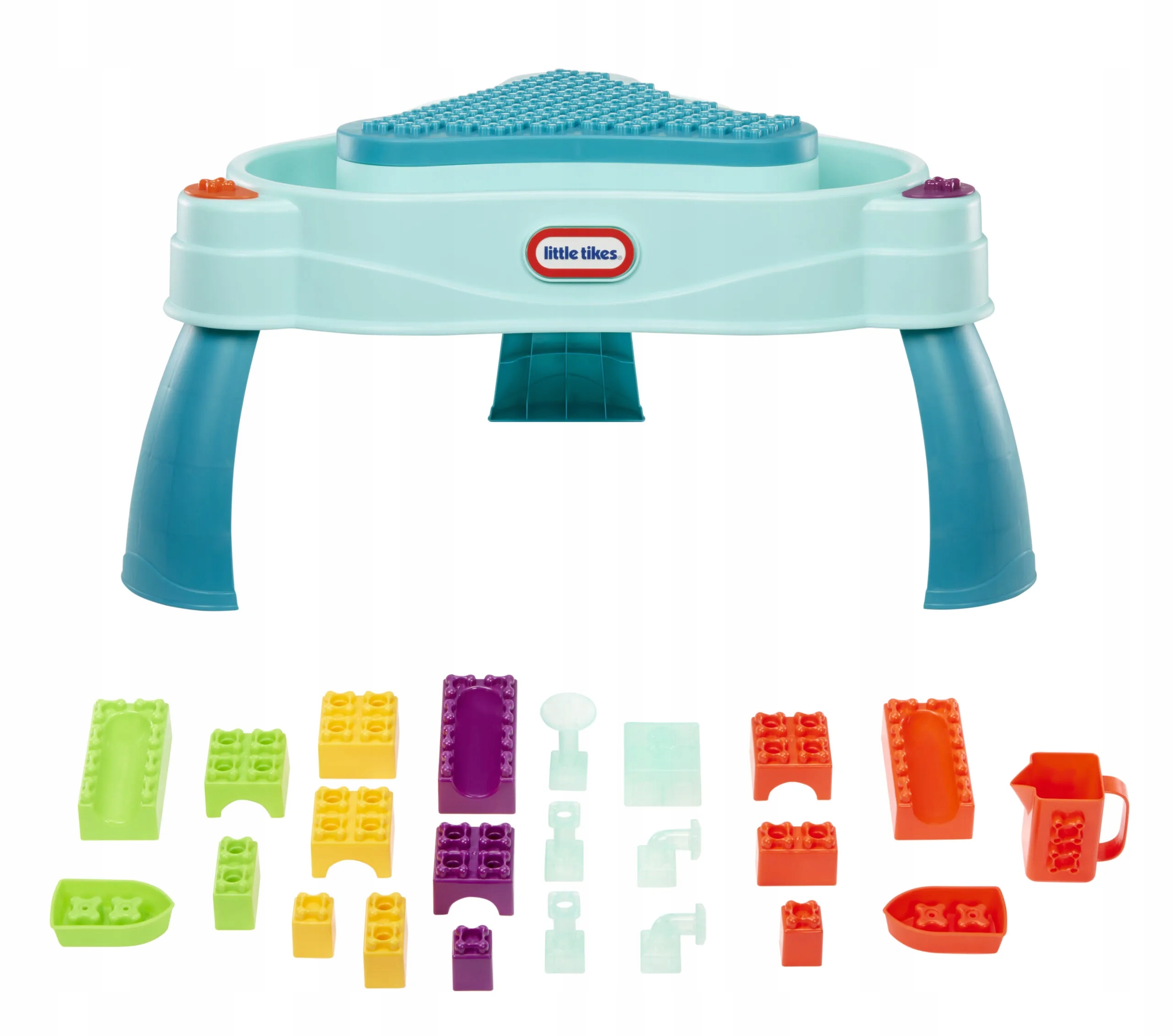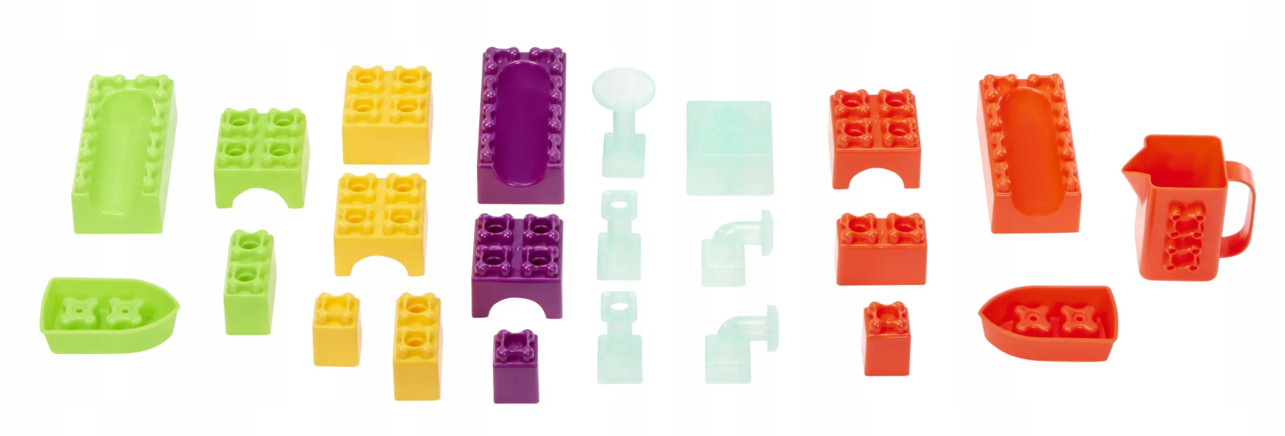 ВЕСЕЛЬЕ КРУГЛЫЙ ГОД — стол для влажной/сухой игры идеально подходит для игр в помещении и на улице. АКСЕССУАРЫ - более 25 аксессуаров, включая блоки, воронки, трубы, лодочки и кувшин. УДОБНОЕ ХРАНЕНИЕ — Съемная средняя поверхность позволяет хранить более 25 аксессуаров. ИГРА «РАСТИТЕ СО МНОЙ» — 3 съемные ножки для игры на полу. УНИКАЛЬНАЯ КОНСТРУКЦИЯ БЛОКОВ — блоки соединяются с другими более младшими блоками. Игра на 360 градусов позволяет многим детям взаимодействовать, что также помогает развивать социальные навыки и сотрудничество.