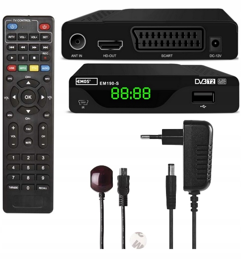 EMOS EM190-S легко подключается к любому телевизору, антенне и другим электронным устройствам благодаря большому количеству входов и выходов на задней панели. После подключения его также легко приступить к работе благодаря интуитивно понятному многоязычному меню, руководству по установке и автоматической настройке программы.