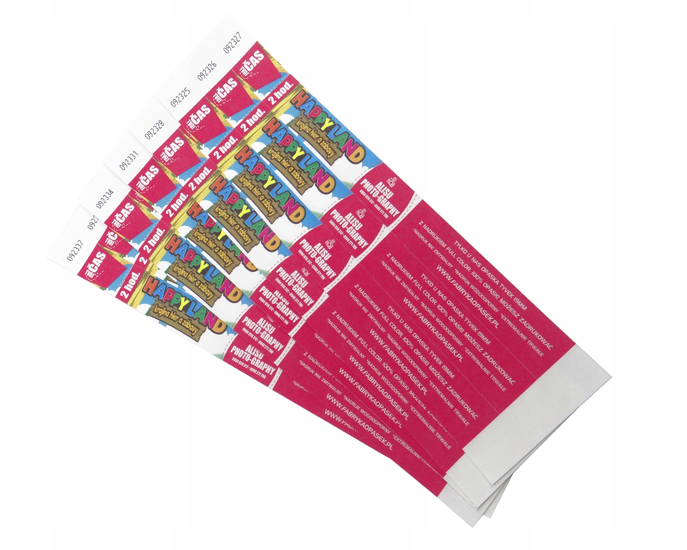 Идентификационные браслеты, разовые билеты, идеальны для любого случая, очень прочные, долговечные, водонепроницаемые и антиаллергенные. Браслеты пронумерованы, самоклеящиеся и имеют собственный очень прочный клей, что делает их пригодными для многодневных мероприятий. Браслеты печатаются на специальной машине, где принт проникает в структуру браслета, делая его устойчивым к механическим повреждениям.