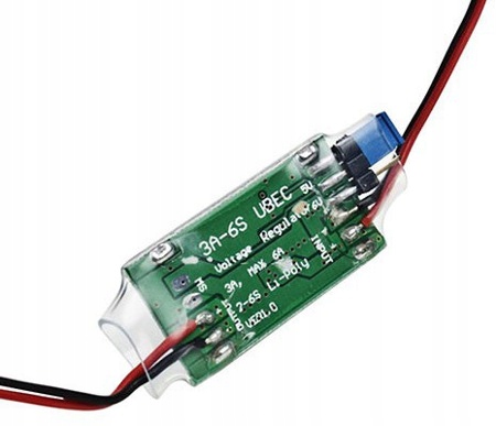 Регулятор напряжения, изменяющий постоянное напряжение 5,5-26В на 5В или 6В (регулируется с помощью перемычки). Он предназначен для питания приемника и сервоприводов. Он отлично работает в моделях самолетов, автомобилей и лодок с электрическим приводом или двигателем внутреннего сгорания.