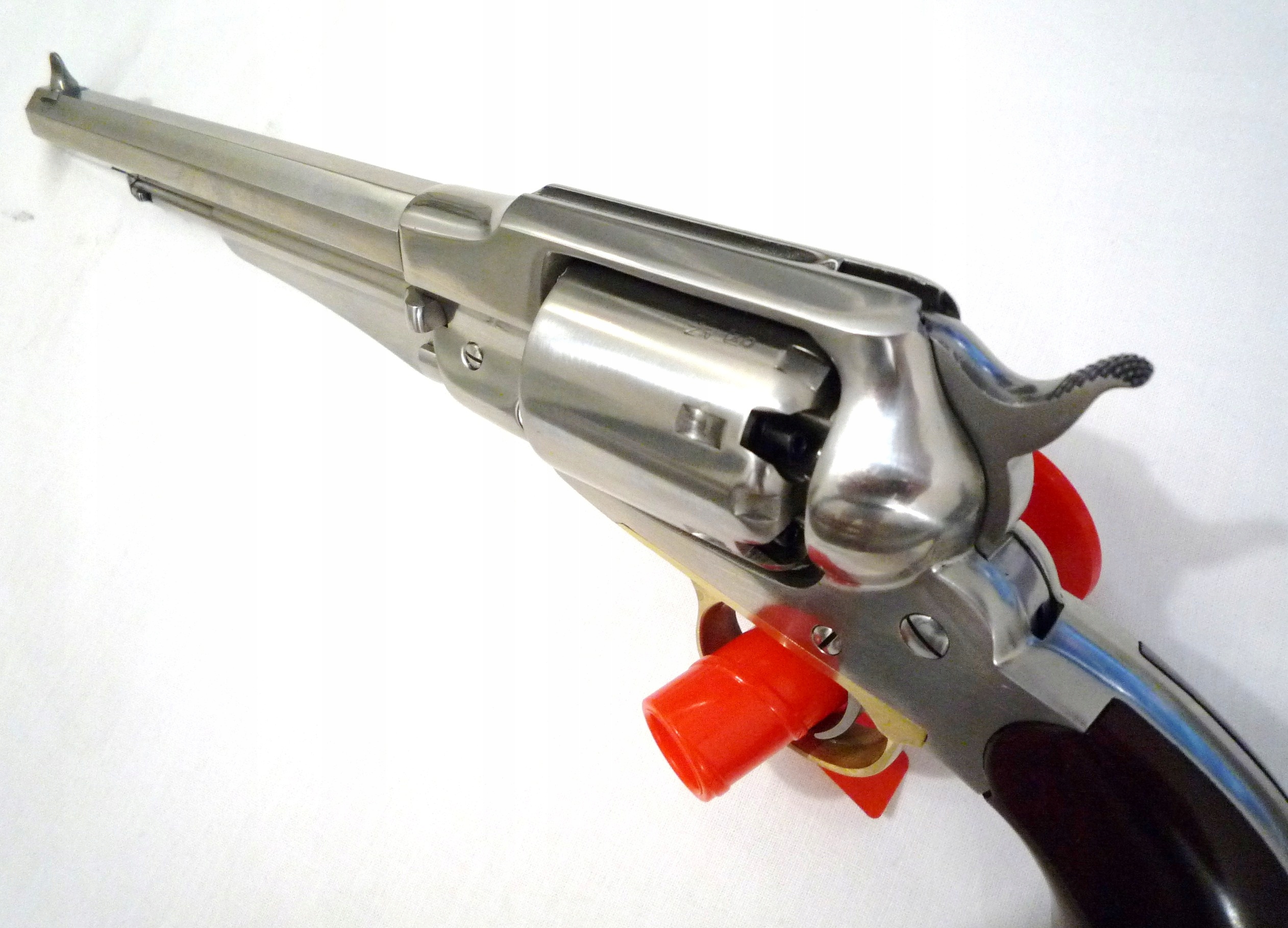 Remington 1858 New Model Army Inox .44, шестизарядный ударный револьвер с черным порохом от Ремингтон калибра .44, дульнозарядный с закрытой рамкой из нержавеющей стали.