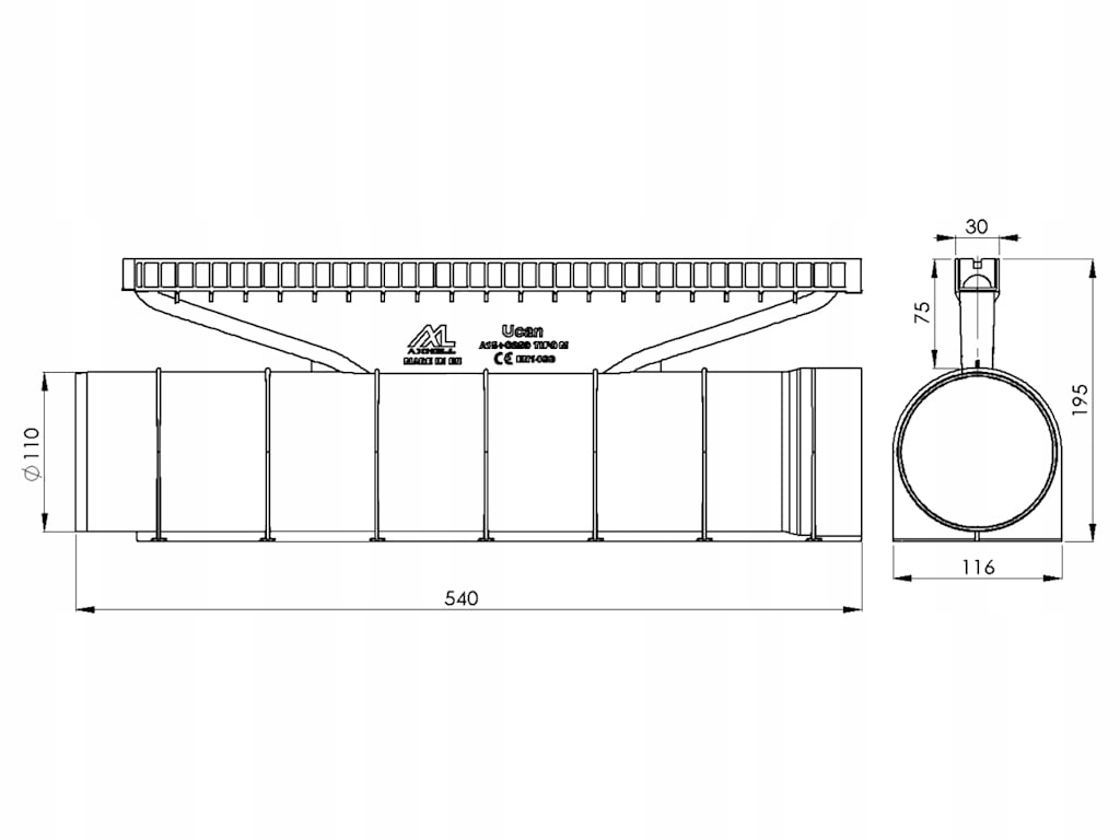 Дренажная щель UCan ø110 C250 Серый