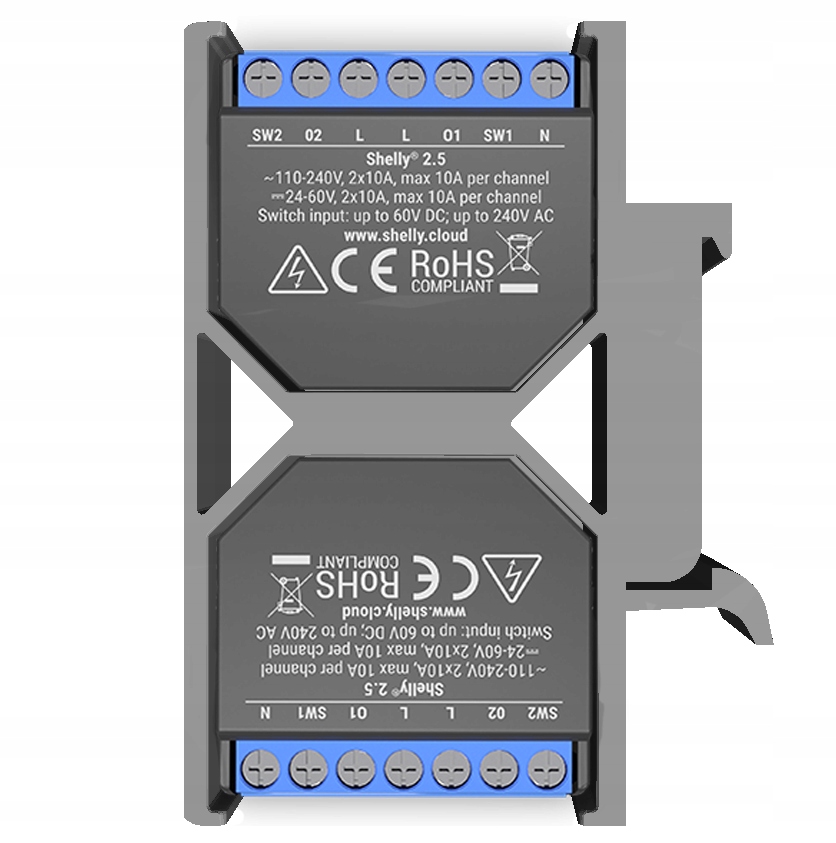 Uchwyt na szynę DIN do 2szt SHELLY 2.5 Solidny