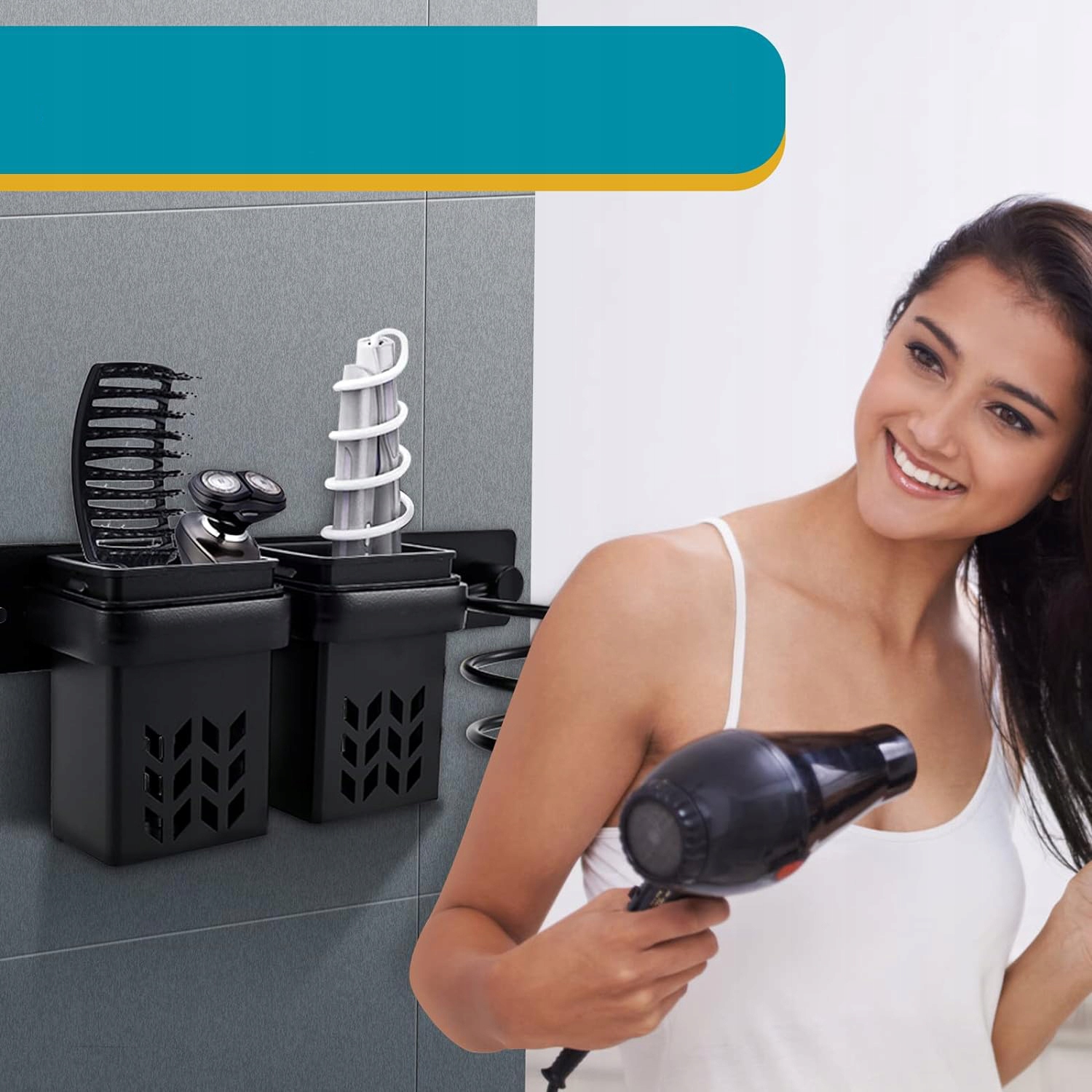 - Этот держатель для фена состоит из 1 держателя для фена и 2 съемных лотков для хранения. В этом настенном держателе для фена вы можете хранить практически все свои инструменты для укладки волос, такие как фены, выпрямители, щипцы для завивки волос, щетки для волос, бритвы и т. д.