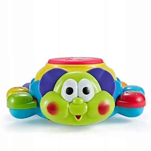 - игрушка играет мелодии и катается (убегает), что помогает в обучении ползанию