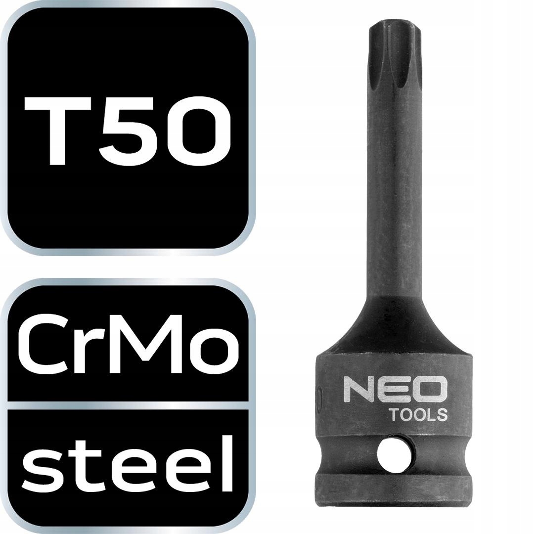 Ударная головка TORX Марка NEO предназначена для инструментов с ударным механизмом. Он обеспечивает защиту от нежелательного выскальзывания штифта из гнезда. Изготовлен из хромомолибдена, устойчивого к коррозии, растяжению и высоким температурам.