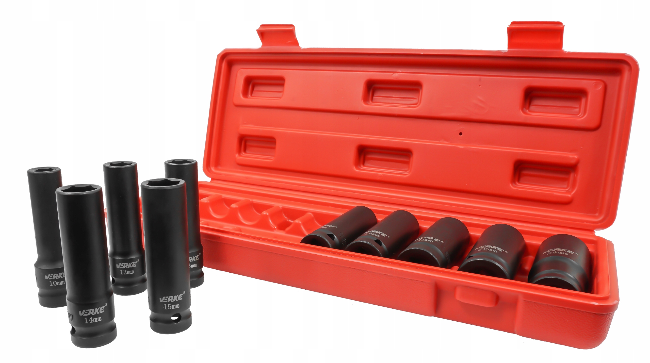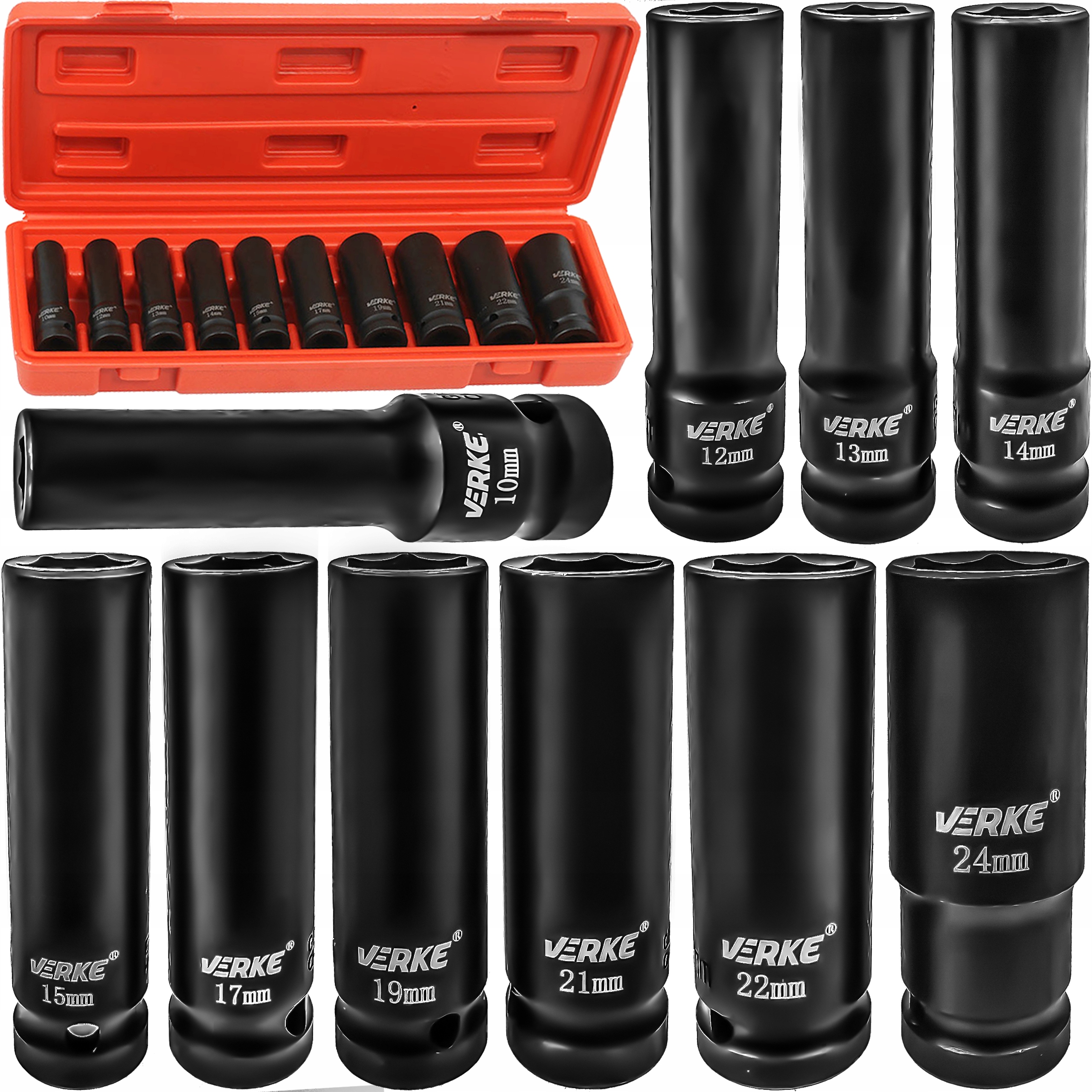 ГОЛОВКИ УДАРНЫЕ ДЛИННЫЕ 1/2" 10 ШТ 10-24мм VERKE