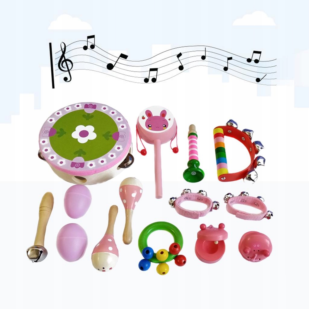 Набор музыкальных инструментов из 14 частей повышает воспроизводимость (включая 1 колокол, 1 полукруга, 1 гремучие, 1 Ratty, яйцо, колокол, 2 кастанеты, молоток, 2 колокола на запястье). Включает в себя корпус для хранения для облегчения хранения.