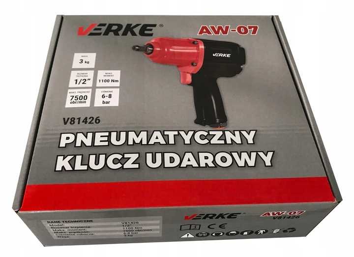 Пневматический ударный гайковерт используется для затягивания/ослабления винтов, гаек и других резьбовых сборочных элементов. Ключ марки Verke – это профессиональный инструмент, который всегда будет рядом с вами во время работы. Это устройство оснащено механизмом двойного удара TWIN HAMMER. Он состоит из двух молотков, вращающихся вокруг шпинделя в закрытой системе. Это решение позволяет достичь огромного крутящего момента уже на первых оборотах ротора, поскольку оба молота могут ударять с обеих сторон одновременно. Эта конструкция, состоящая из двух кольцевых молотков, отличается высокой прочностью и особенно подходит для длительных рабочих циклов. Ключ имеет регулировку вращения вправо/влево и регулировку крутящего момента. Эти инструменты долговечны, прочны и надежны, поэтому вы сможете работать быстрее и эффективнее. Специально профилированная ручка обеспечивает комфортную работу и полный контроль над устройством.