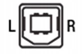 Кабель USB будет повернут ВПРАВО (R), если угловой разъем кабеля вставлен в порт USB на устройстве, если это выглядит так.