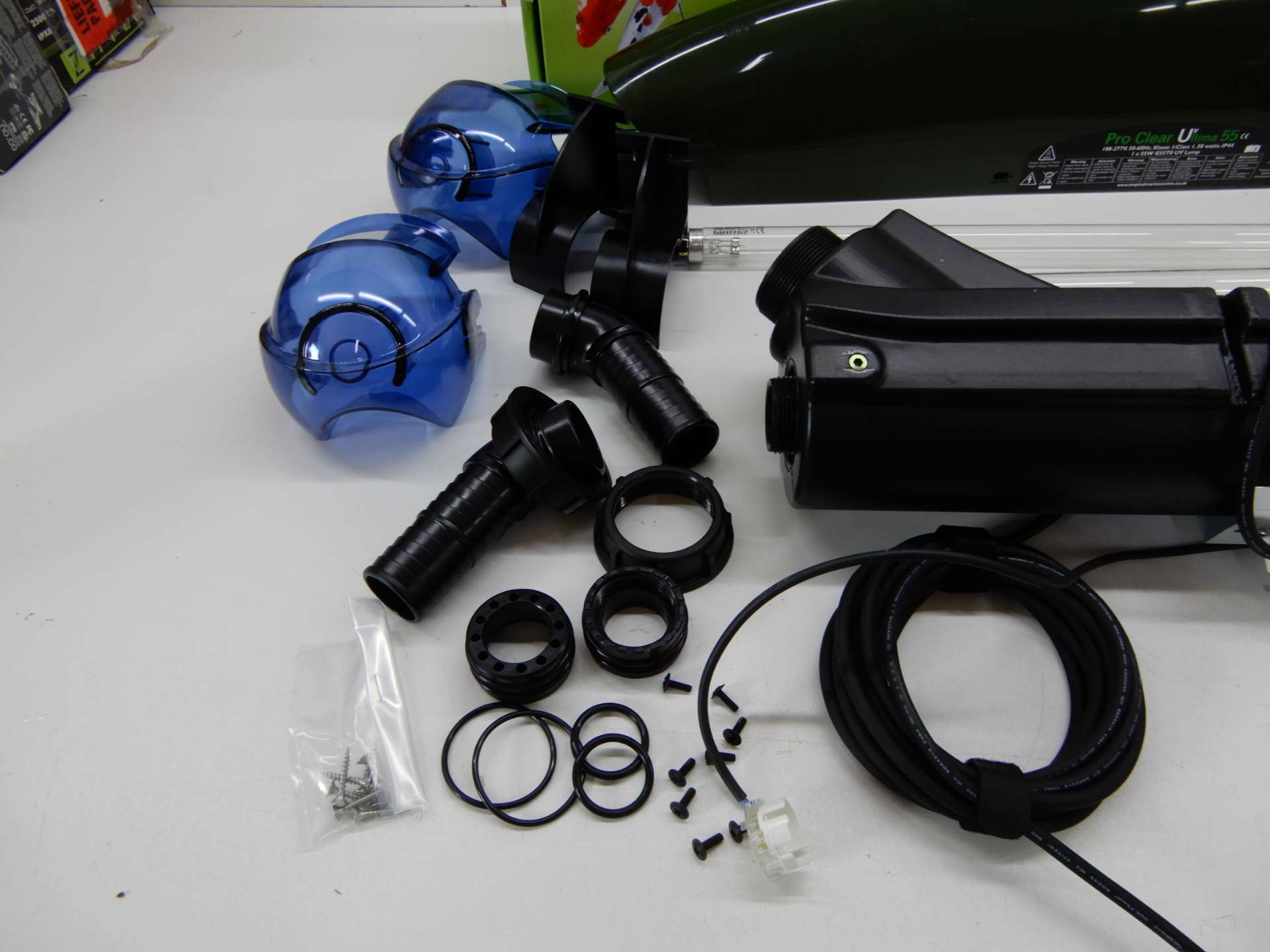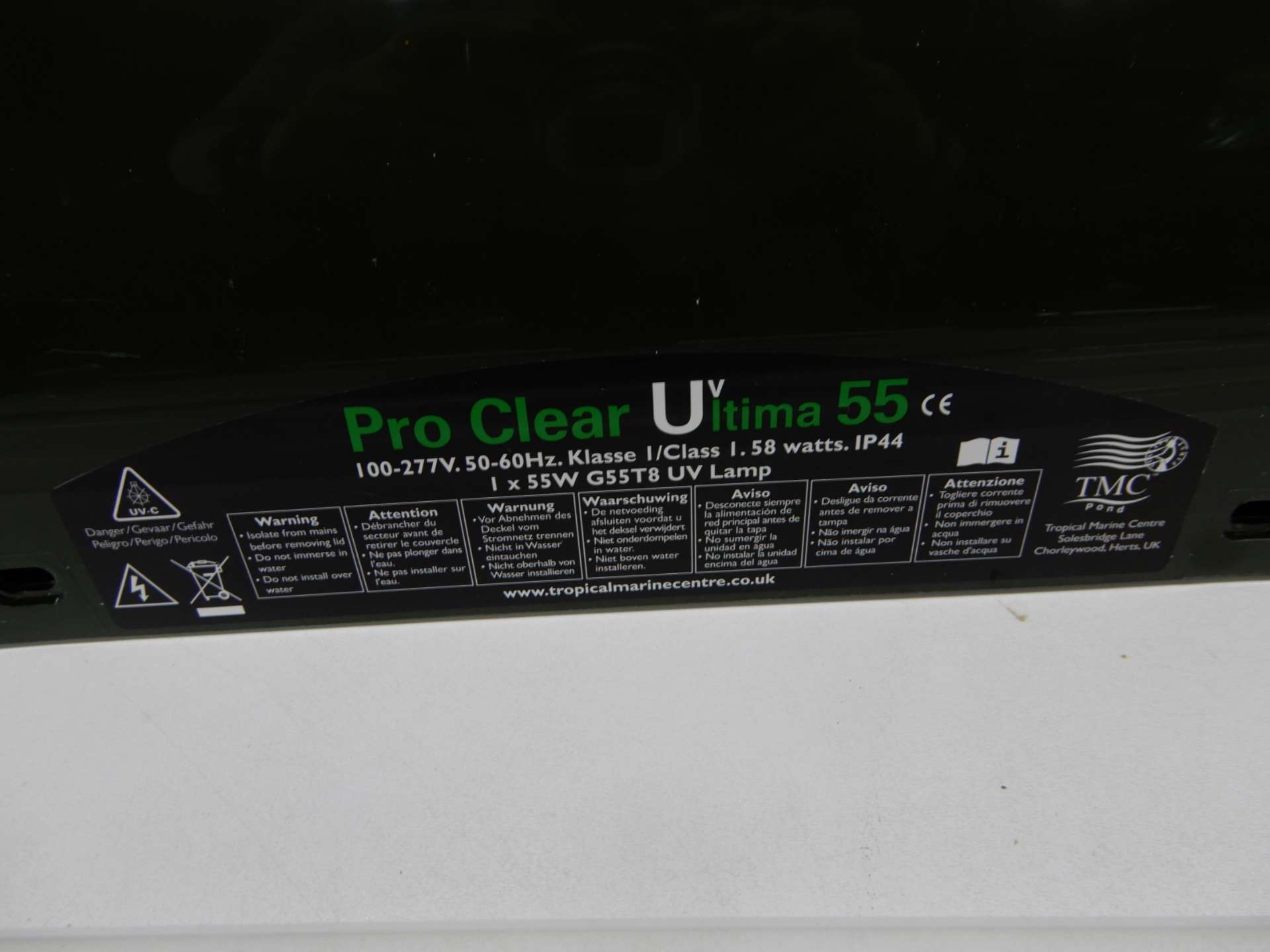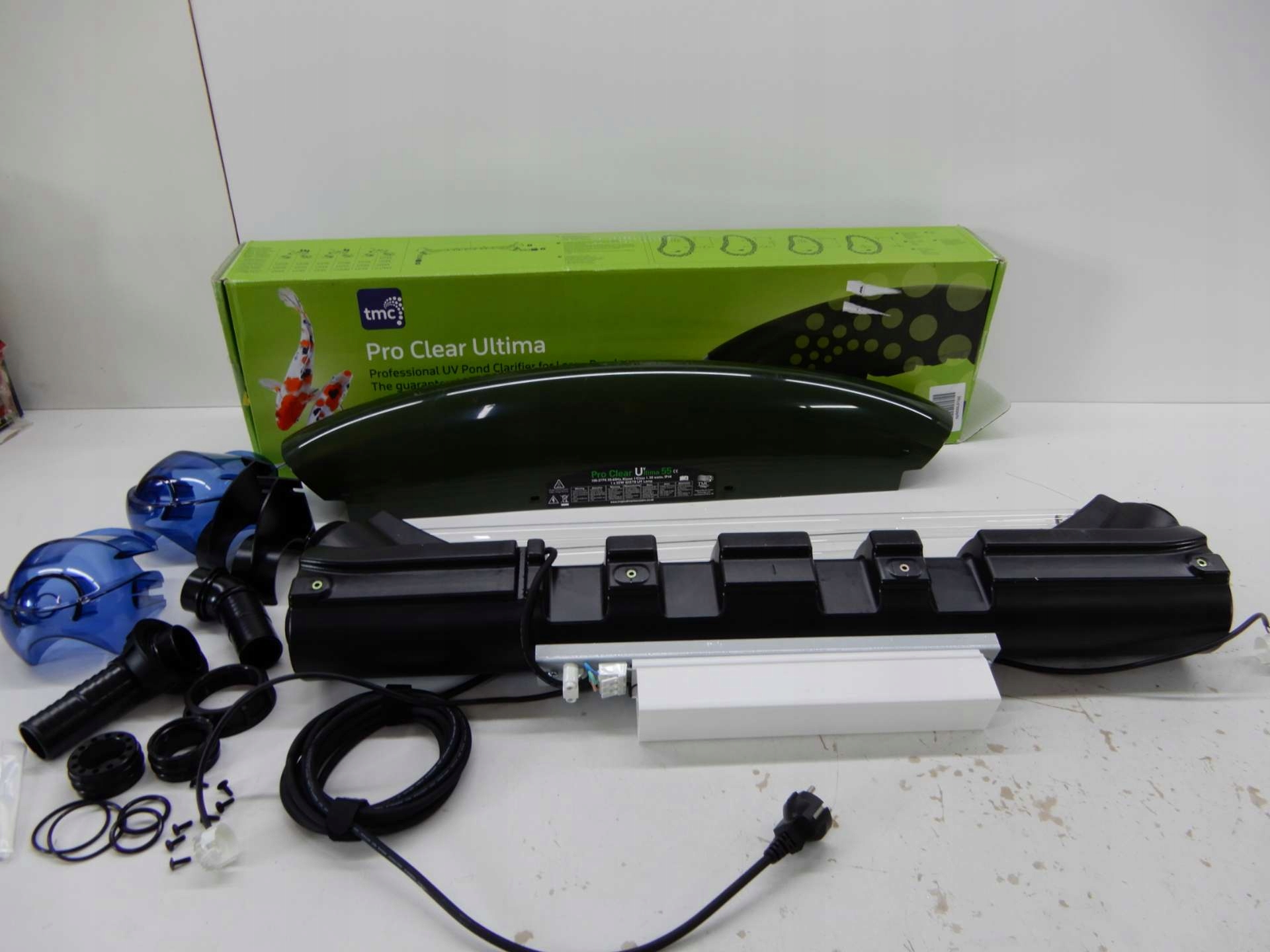 <р> Поворотные соединители шлангов делают устройство очень удобным в использовании. Это дает возможность подключить устройство любым способом. Кроме того, концы шлангов легко снять, что упрощает обслуживание УФ-блока. Лампу легко заменить, а запасные части очень доступны. УФ-лампу следует заменять примерно раз в год. Если лампу оставить внутри дольше, она будет работать хуже и качество ухудшится. <р> TMC 55 Вт можно использовать для пруда емкостью до 45 000 литров, пруда с рыбой емкостью до 27 500 литров или пруда с кои емкостью до 13 750 литров. Устройство имеет 2-дюймовую внешнюю резьбу со шланговыми соединениями до 38/40 мм. Кроме того, устройство имеет максимальный расход 18 000 литров в час и поставляется с кабелем длиной 5 м. <р> Короче говоря, очень удобная УФ-лампа, которая поможет поддерживать чистоту вашего пруда.Параметры продукта