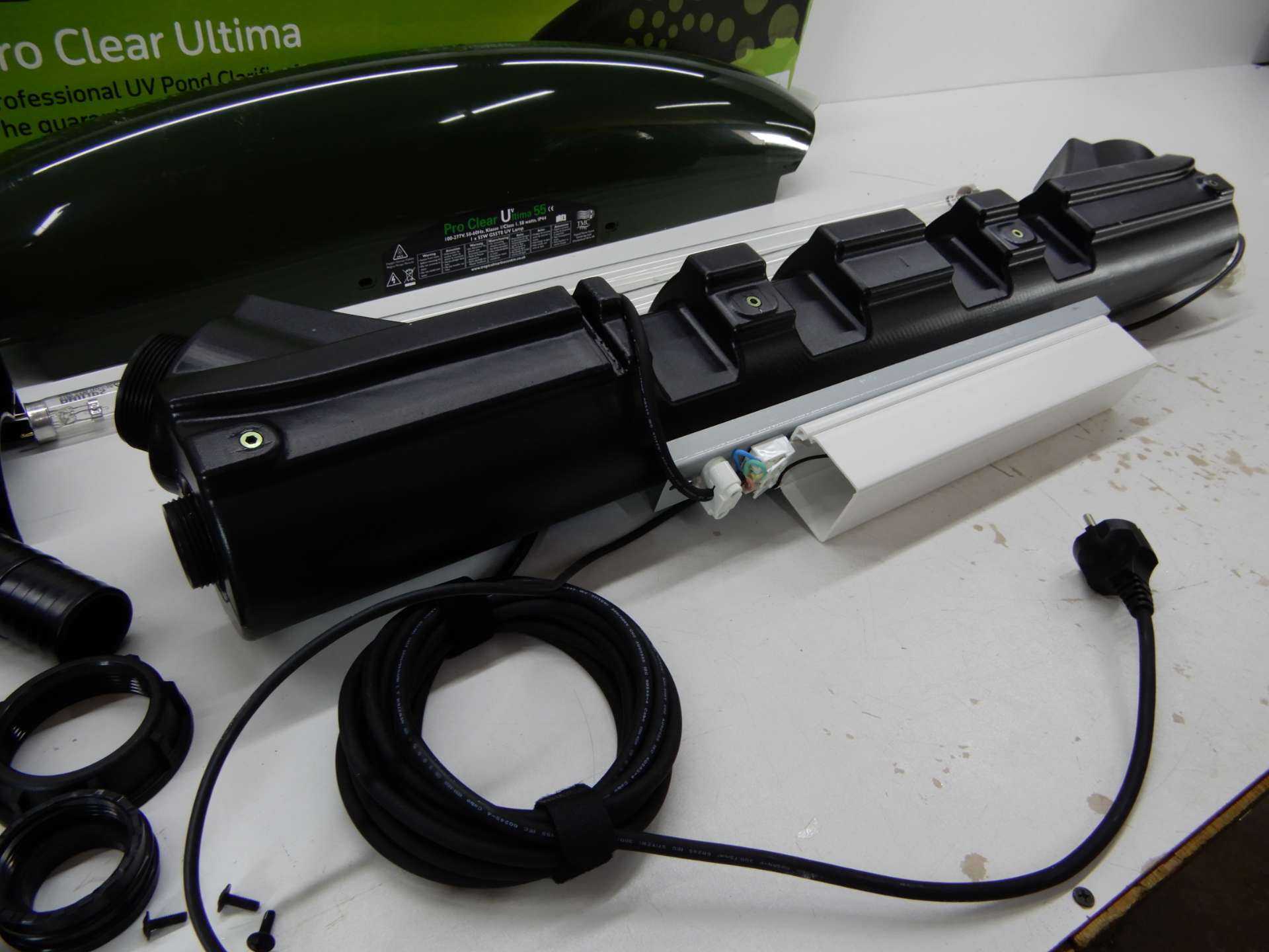Устройство TMC Pro Clear Ultima использует ультрафиолет для уничтожения всех плавающих водорослей. Вода прокачивается через установку UVC, и лампа облучает воду, в результате чего пруд становится чистым. Нет больше зеленого пруда.