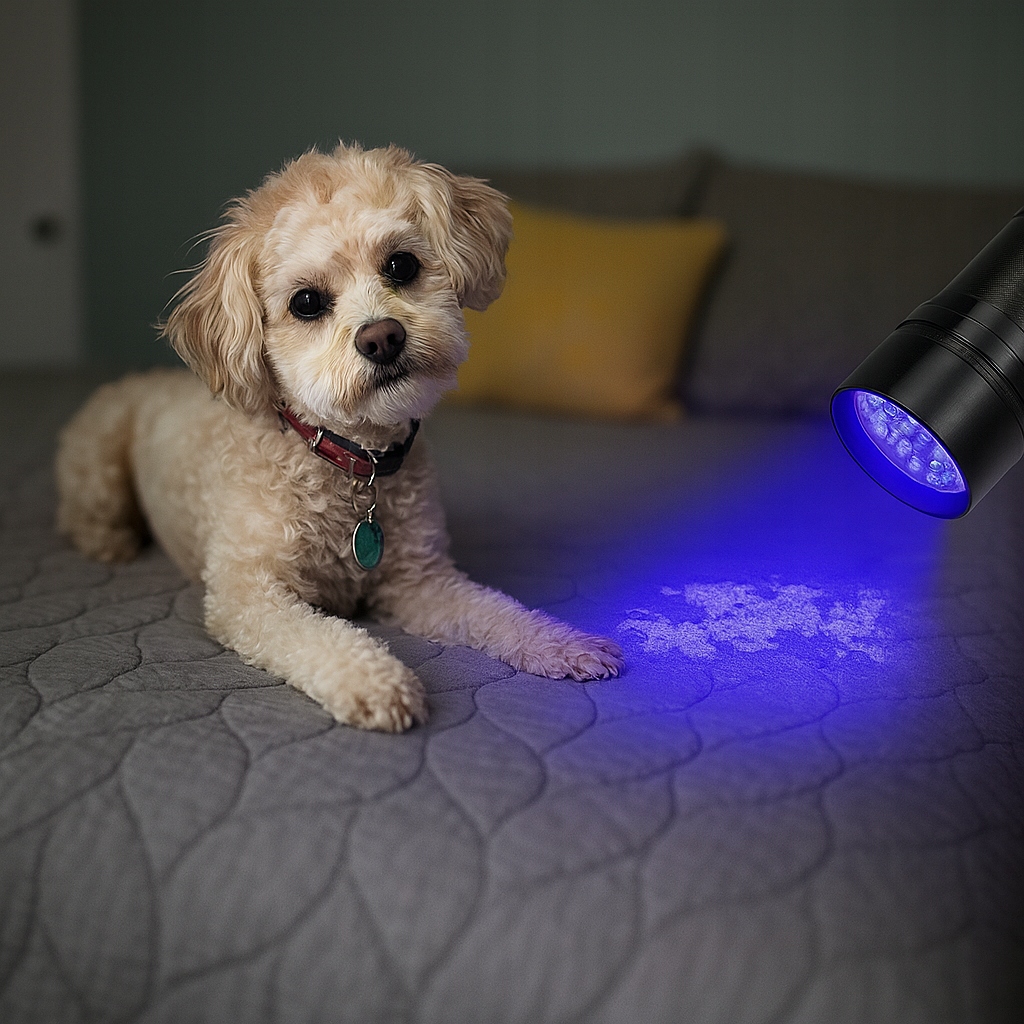 Несчастные случаи с мочой/домашними животными: Яркая желто-зеленая флуоресценция