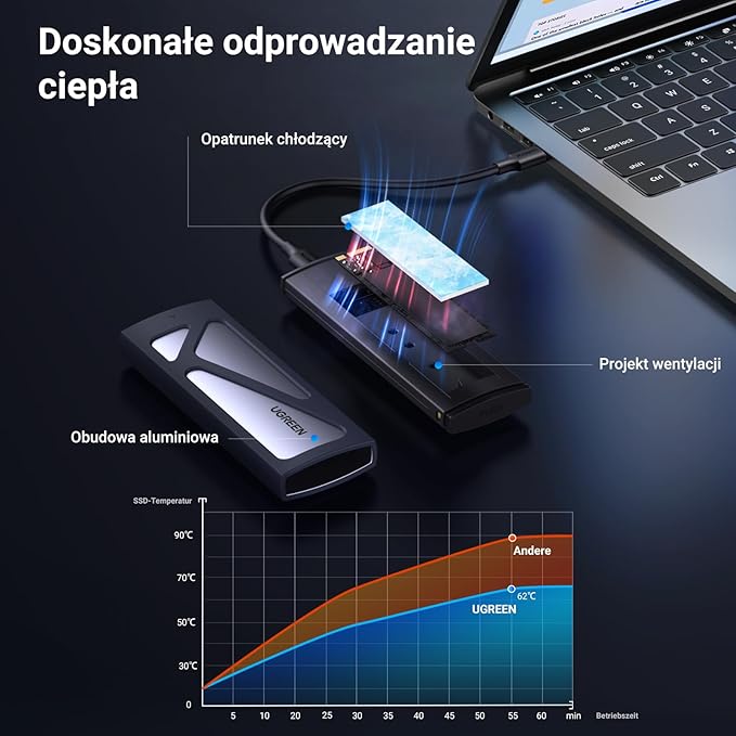 - Алюминиевый корпус этого адаптера M.2 SSD обеспечивает эффективность охлаждения.