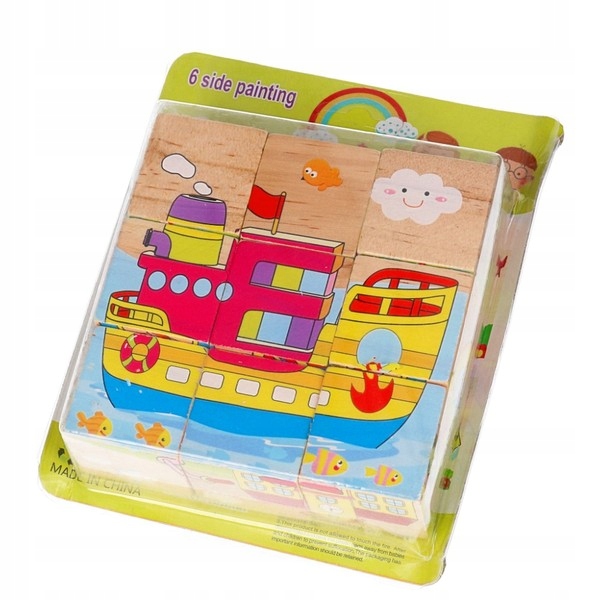 UKŁADANKA DREWNIANA statek POJAZDY klocki 4428