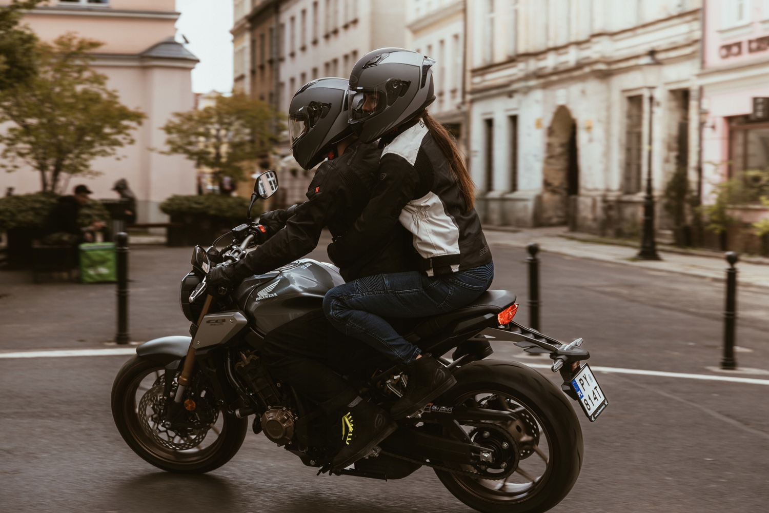 Безопасность мотоциклиста в случае падения обеспечивают вышеупомянутые сертифицированные наколенники, размещенные в легкодоступных карманах. Важно отметить, что легкий и быстрый доступ к протекторам обеспечивают внешние молнии (спрятанные под клапанами), что позволяет быстро и легко снять их, не снимая штанов, например, после поездки на работу. В свою очередь, примесь
