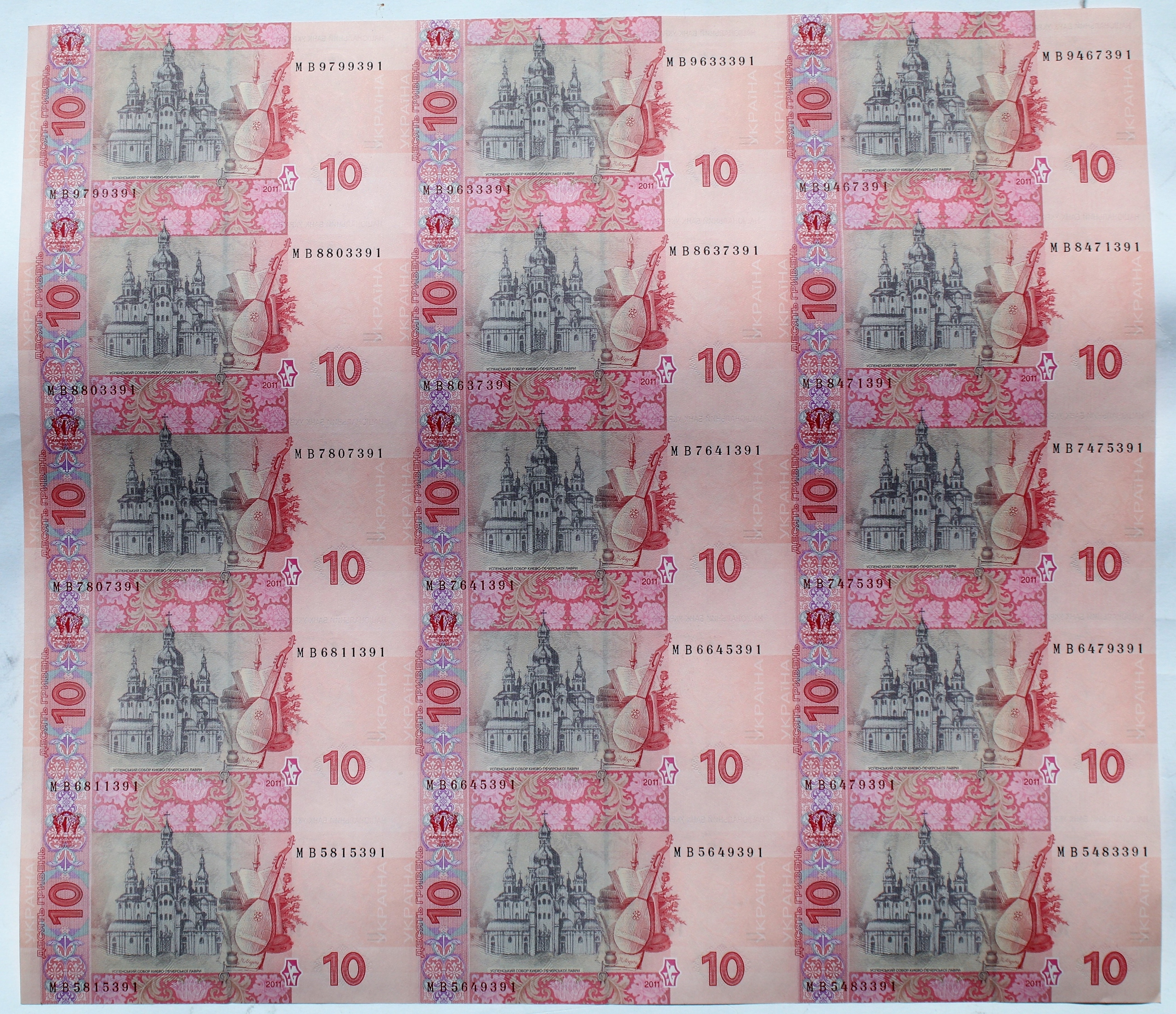 Україна - Лист з 15 банкнот номіналом 10 грн 2011 UNC