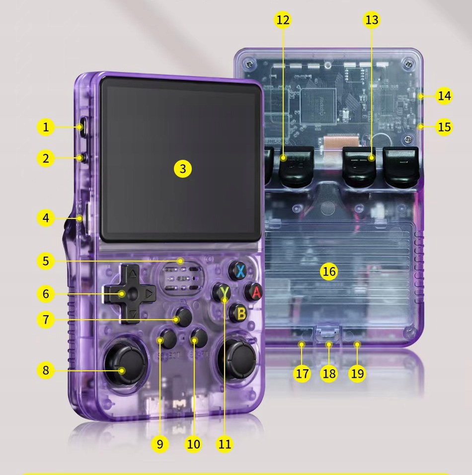 , оснащенное Linux, 3,5-дюймовым экраном IPS из OCA, полностью соответствующего HD HD MIPI с разрешением 640x480 и профессионального процессора для RK3326, 1,5 GHZ, 64-летние игры System Game System System System System Game System System. Начиная с большими 2D -играми и некоторыми 3D -играми. Оснащен кнопками 4 L/R на задней части, изогнутой и обеспечением адгезии для лучшего игрового процесса. Адаптер (кабель OTG не включен). 3000 мАч: