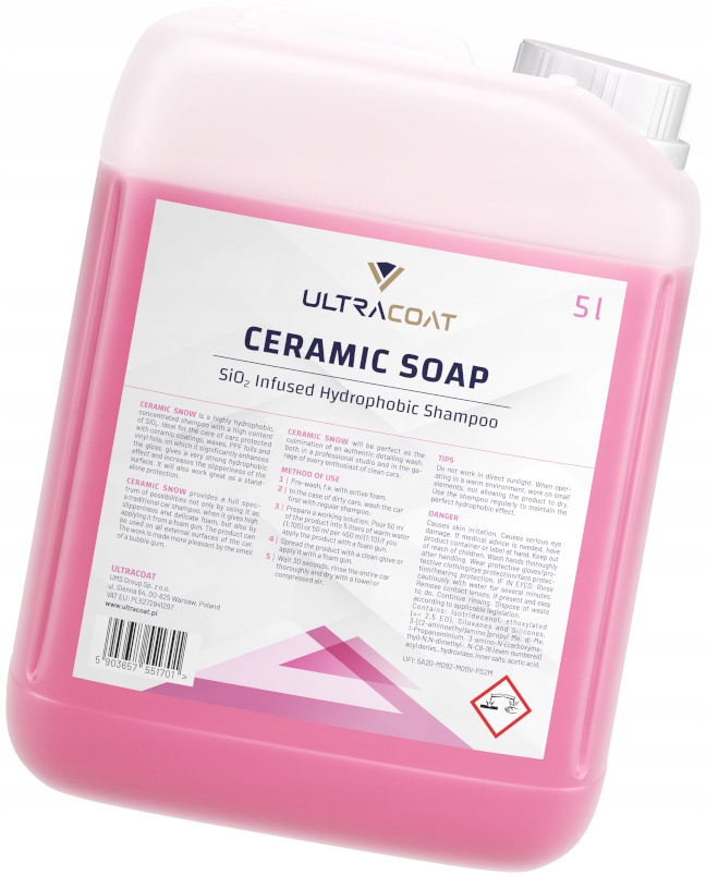 ULTRACOAT CERAMIC SOAP 5L Гидрофобный шампунь для мойки автомобилей с добавкой SiO2