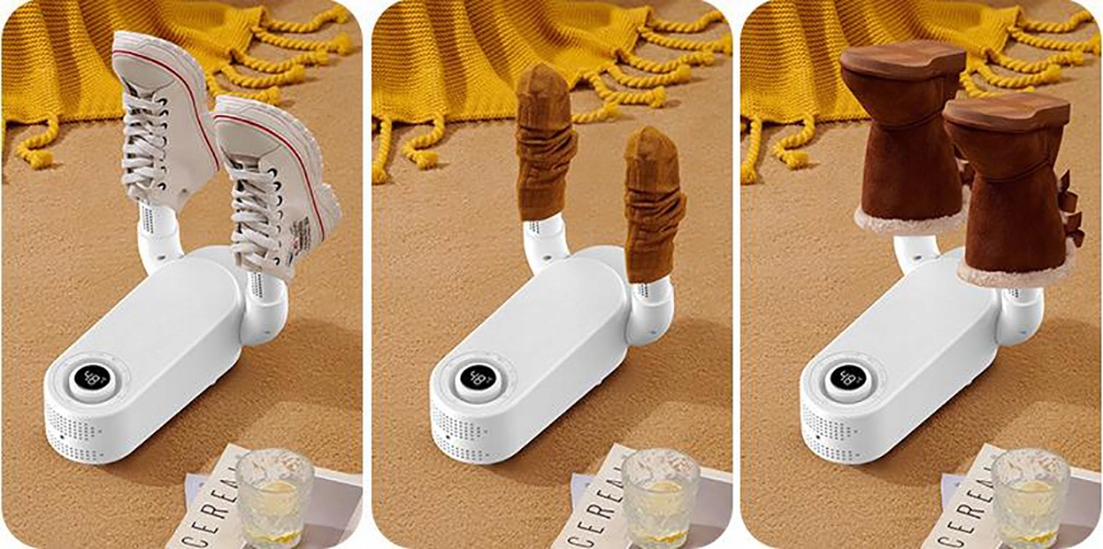 Благодаря использованию эффективных элементов отопления, горячий воздух может быть быстро и равномерно взорван в туфли, что ускоряет испарение влаги, сокращает время сушки и заставляет обувь в короткое время. в сухое состояние