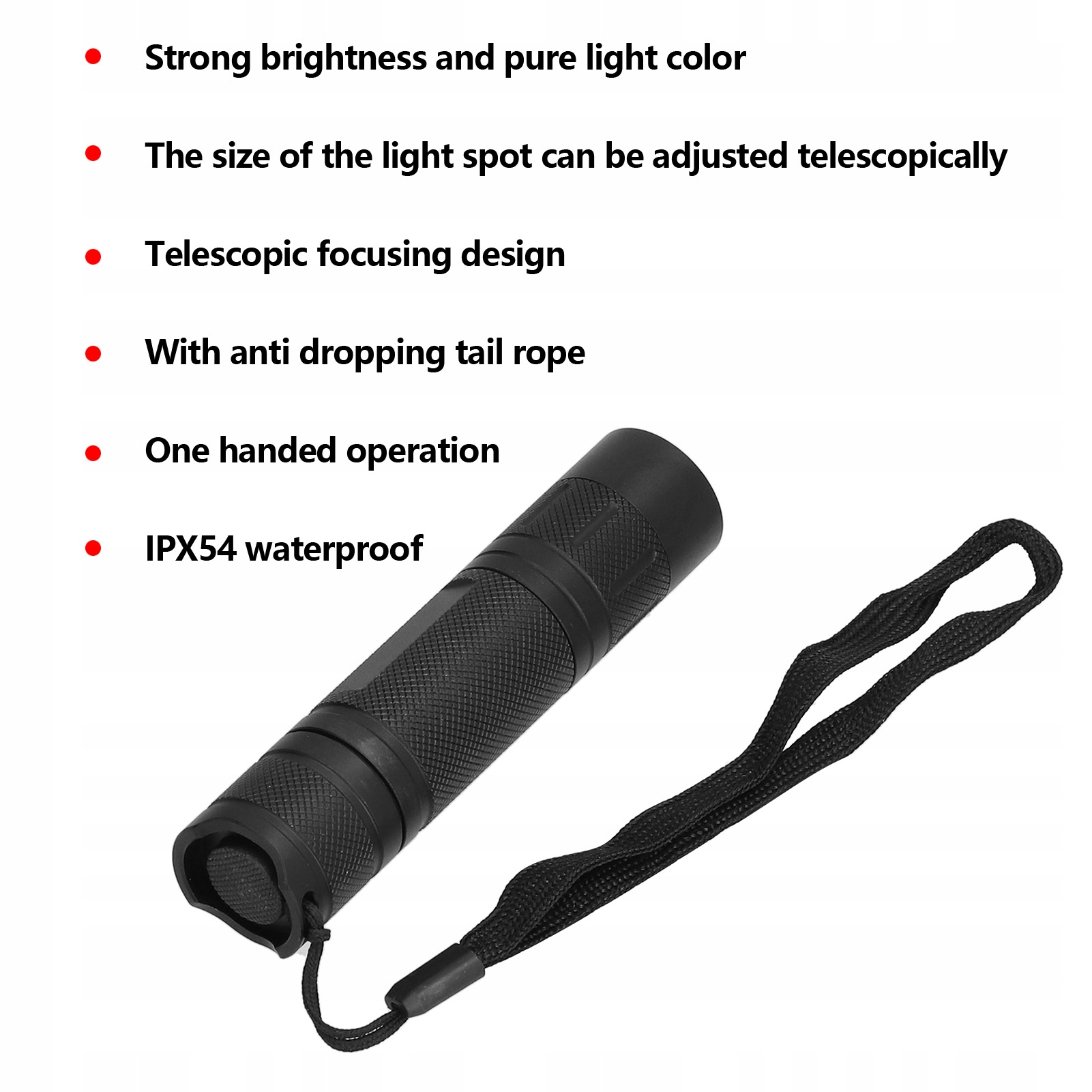3. Простой внешний вид, телескопическая конструкция фокусировки, хвостовой трос, предотвращающий падение, удобный и универсальный, можно управлять одной рукой.