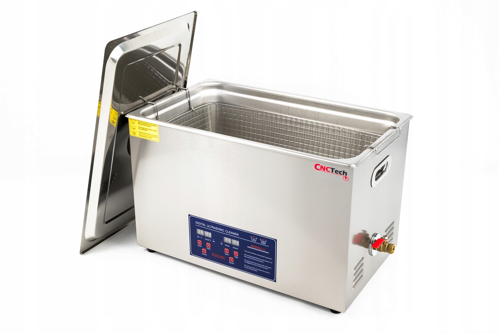 PS100A ультразвуковой очиститель емкостью 30л с подогревом и временем работы. Стиральная машина мощностью 600 Вт имеет цифровое регулирование. Благодаря этому вы можете легко устанавливать температуру и время работы. Стиральная машина имеет корзину и шумопоглощающую крышку с амортизирующей ручкой.
